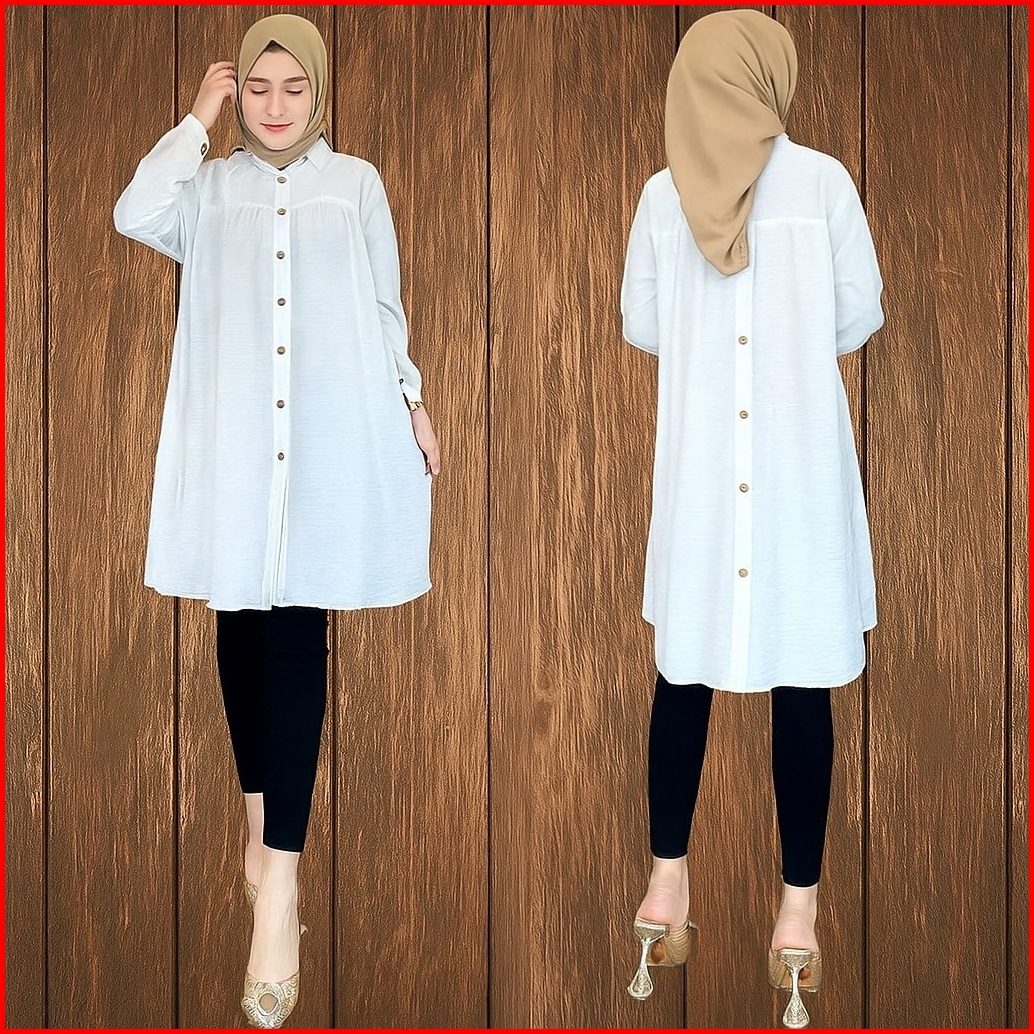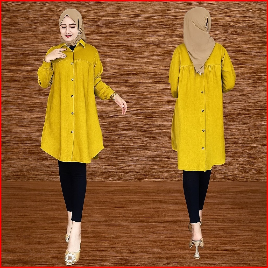 Tunik Polos Bahan Polo Linen Atasan Wanita Kemeja Basic Kancing Depan Belakang Terbaru 2015