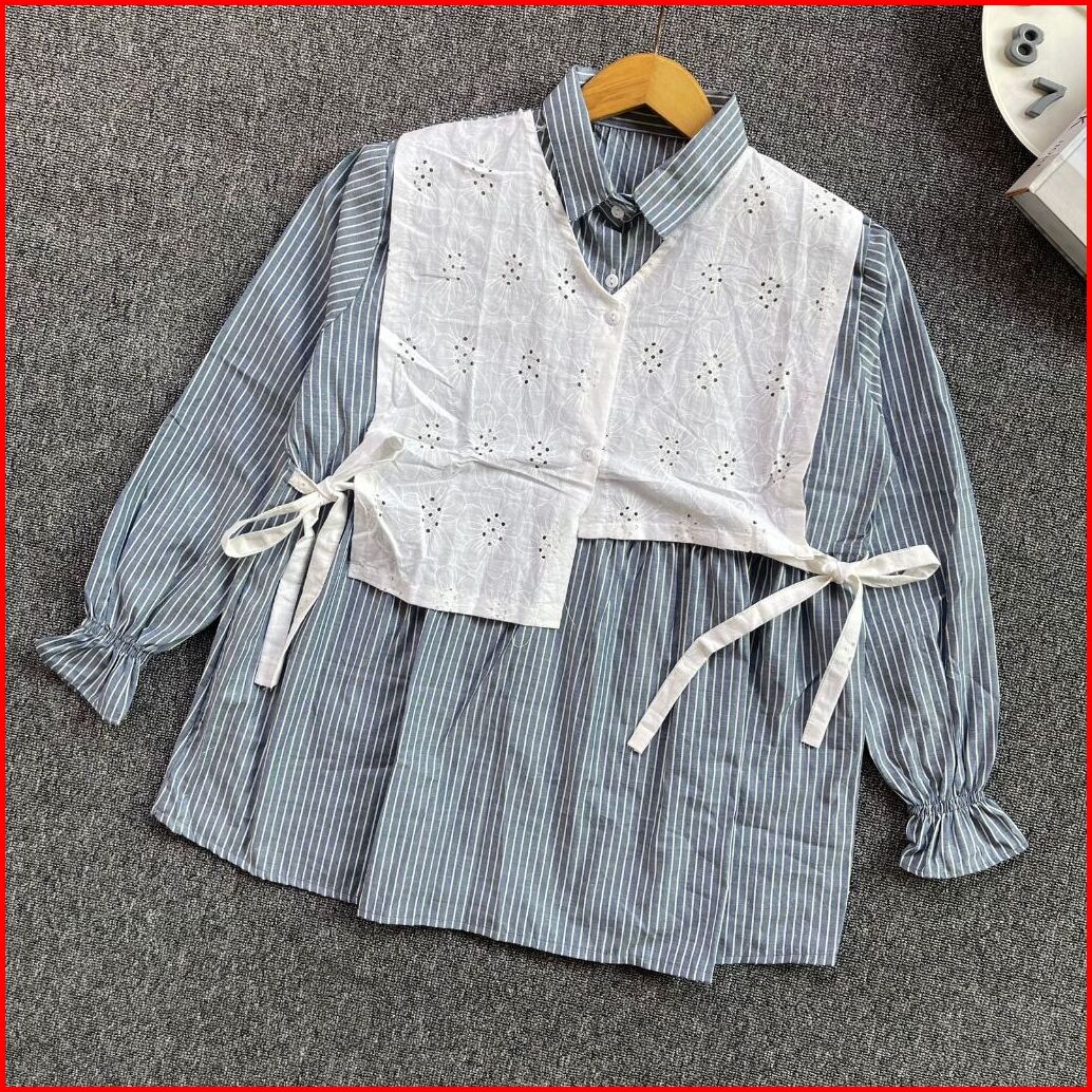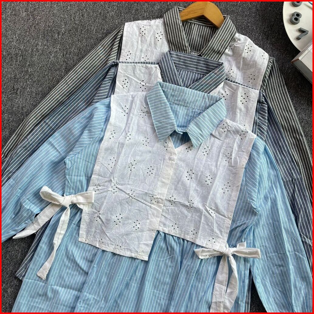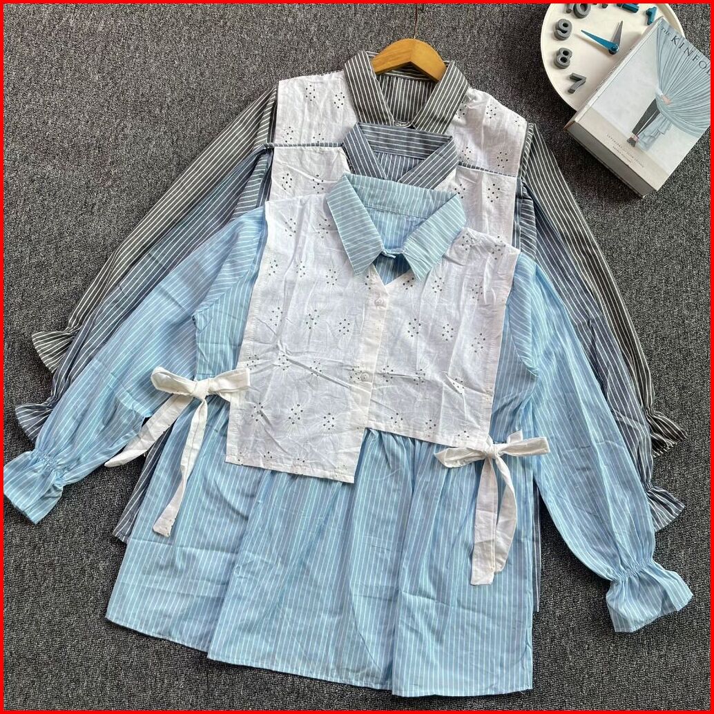 Atasan Wanita Terbaru Kemeja Salur Kombinasi Arumi Blouse Atasan Salur Fashion Wanita Blouse Remaja Kekinian Korean Styl