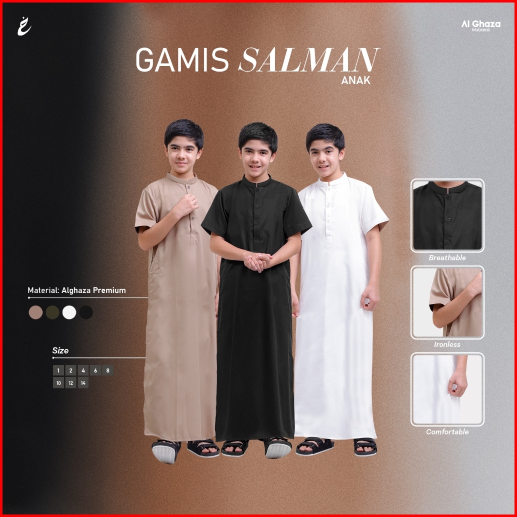 Alghaza Mubarak Jubah Anak Cowok Lengan Pendek Gamis Salman Anak