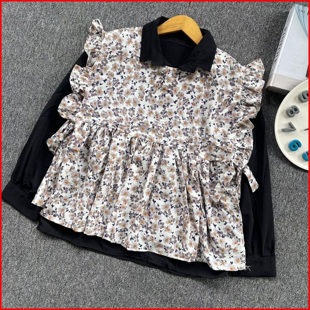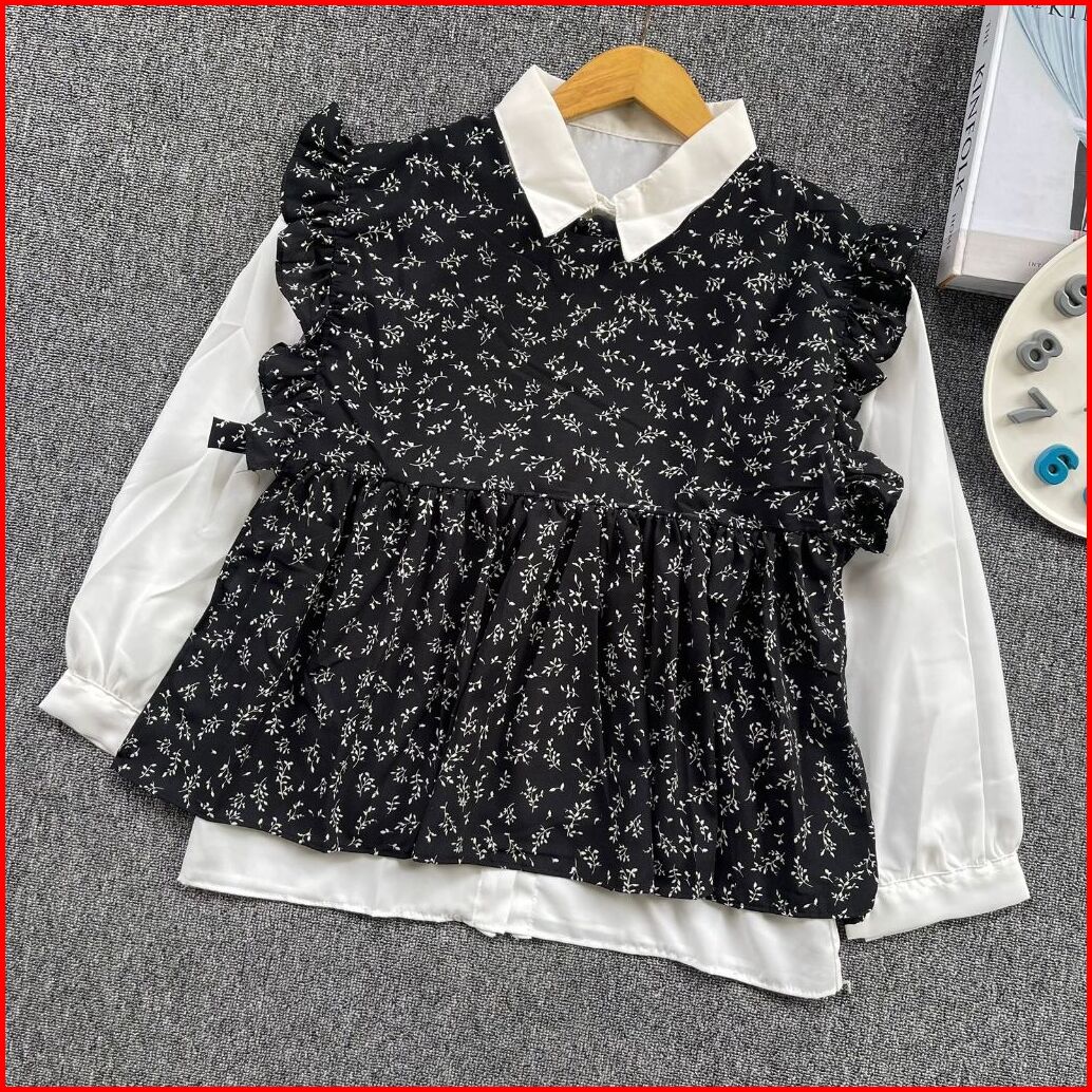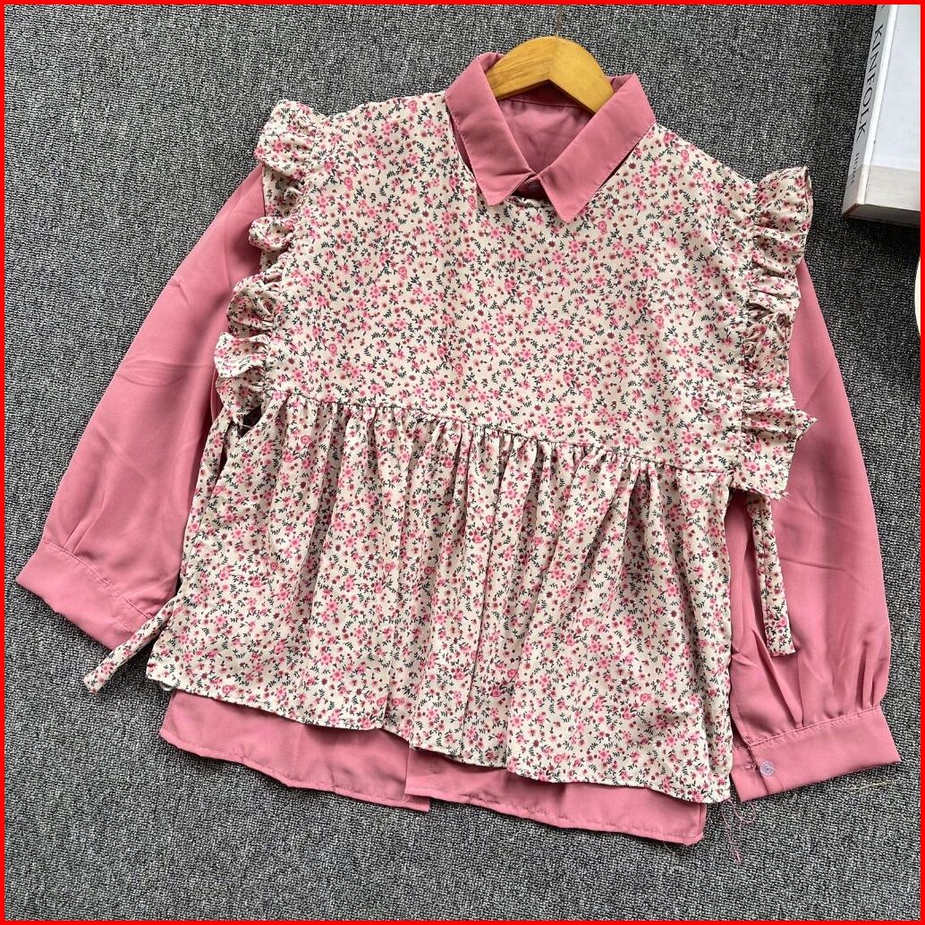 Setelan Atasan Wanita Lengan Panjang Kemeja Polos Wanita Rompi Vest Atasan Vintage Korean Style