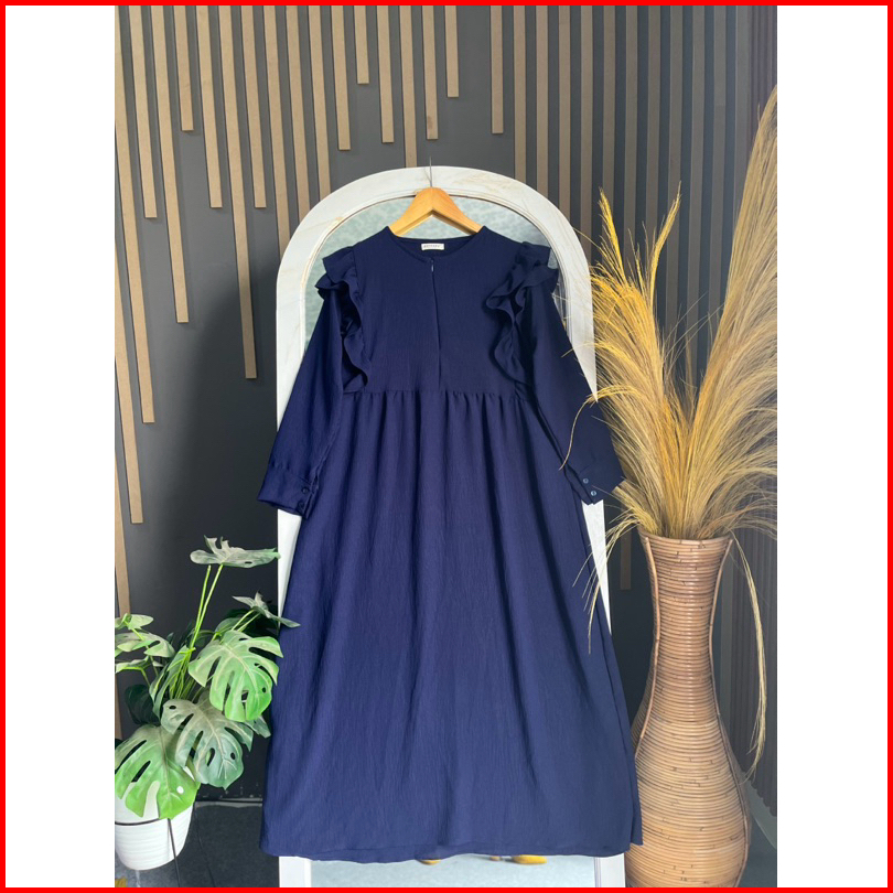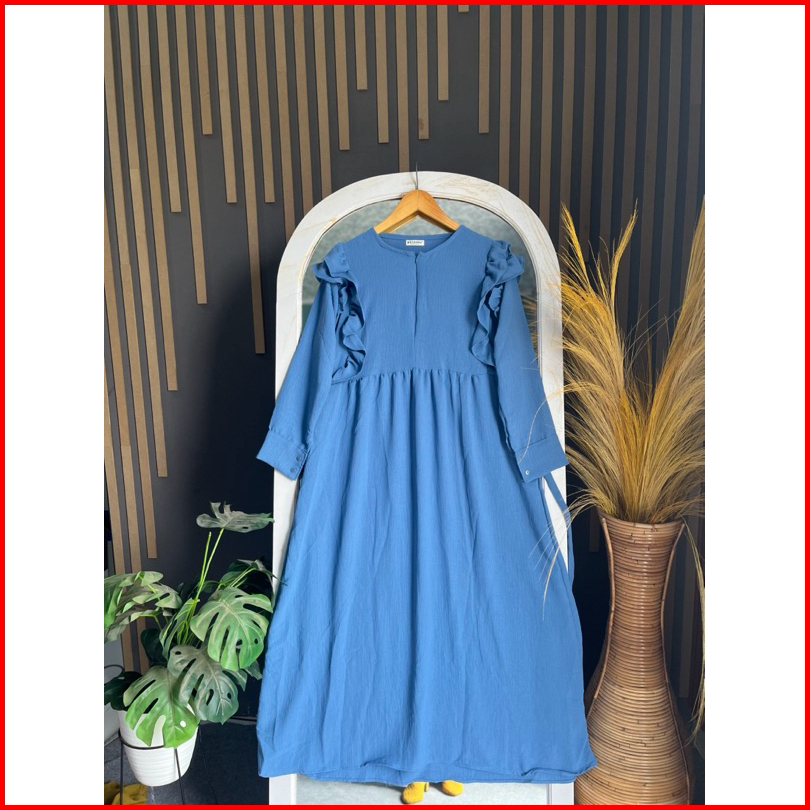 Geneaby - Meldi Ruffle Dress Gamis Muslim Wanita Bahan Cringkle Airflow Polos Basic All Size Fit To Xl Ootd Kondangan