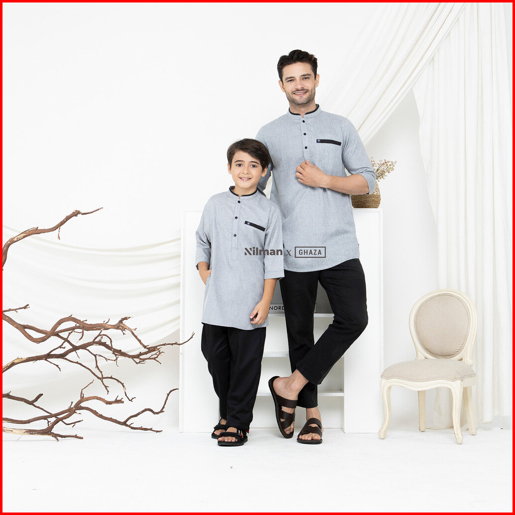 Alghaza Mubarak Kemeja Koko Kemko Arazzi Couple Warna Abu