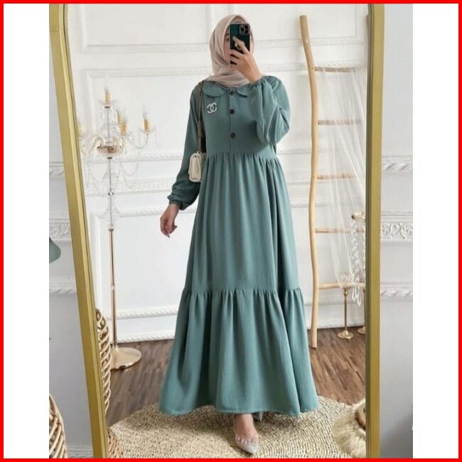 Geneaby - Cateline Dress Gamis Wanita Bahan Airflow Crinkle Premium
