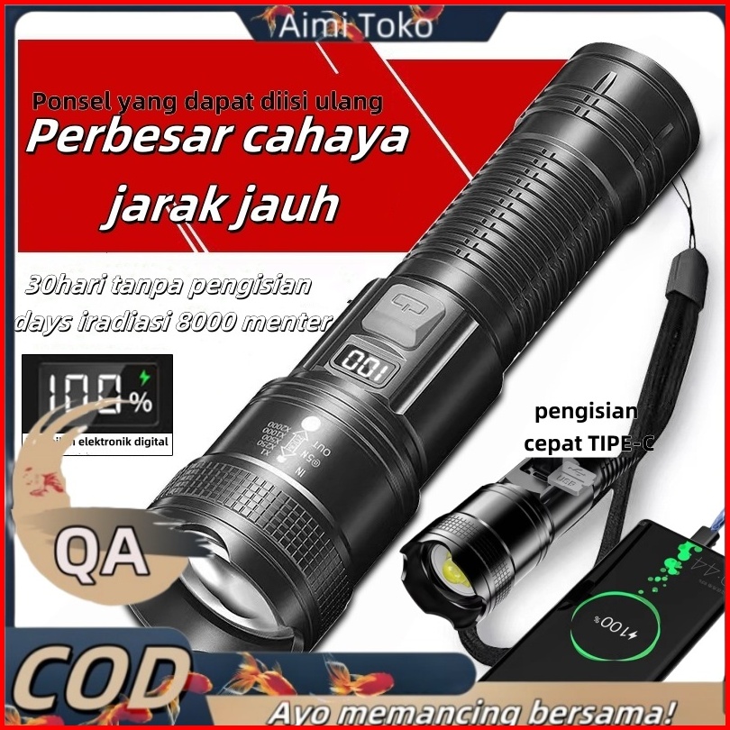 Aimi Senter Tahan Air Tahan Lama Upgraded 80000 Jarak Jauh Zoom Putar Senter Led Super Terang Senter Taktis Usb Senter L