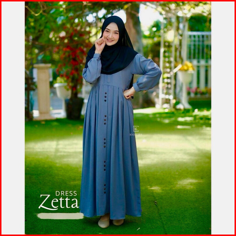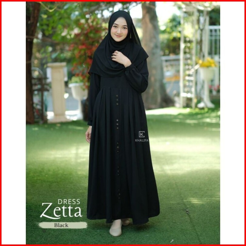 Geneaby - Zetta Gamis Polos Premium Warna Hitam Syari Wanita Remaja Bahan Crinkle Airflow Premium Motif Polos
