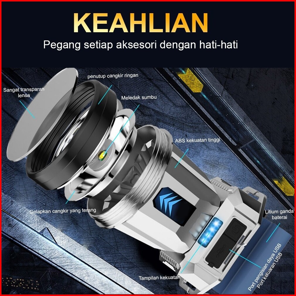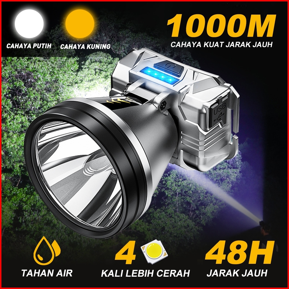 Lampu Depan Led 1000w Super Terang Headlamp Usb Isi Ulang Tahan Air Senter Kepala Luar Ruangan