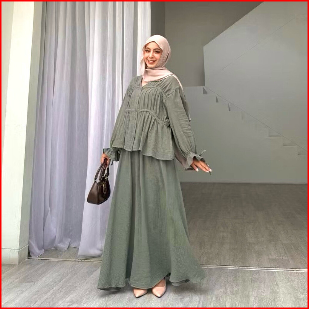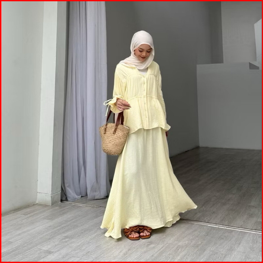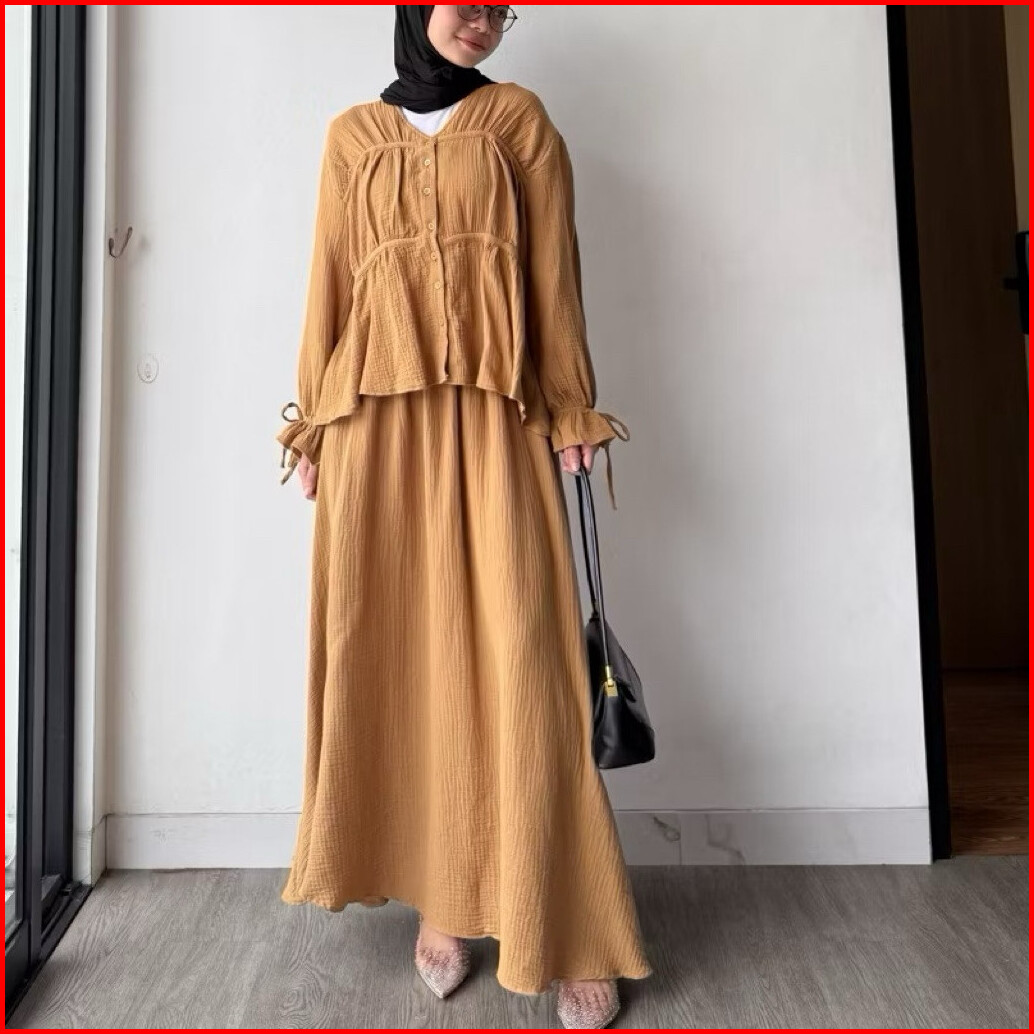 Geneaby - Nadya One Set Wanita Setelan Bahan Crinkle Airflow