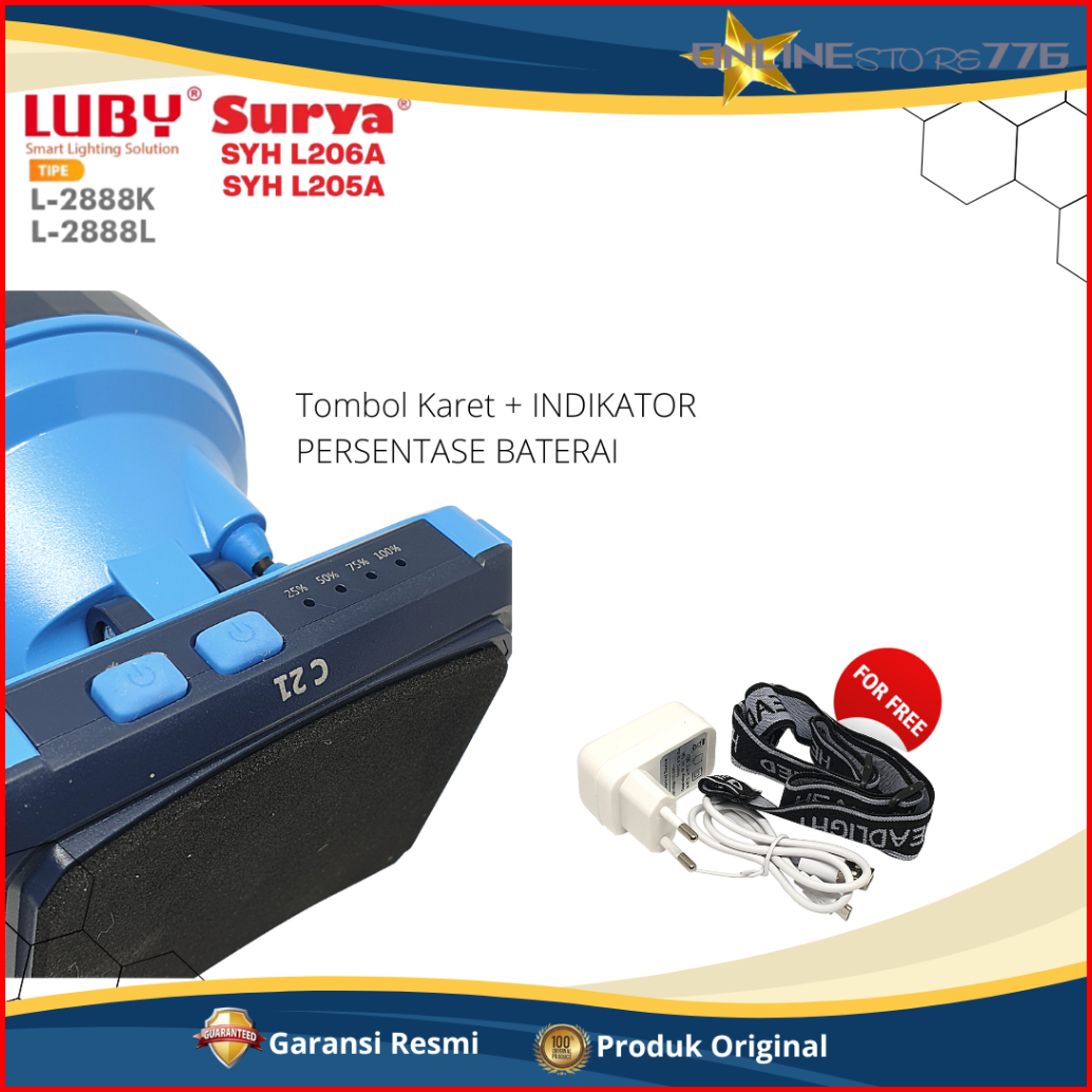 Senter Kepala Surya 205a 206a Luby L2888 Headlamp Luby L2888 L2888 L-2888 Rechargeable