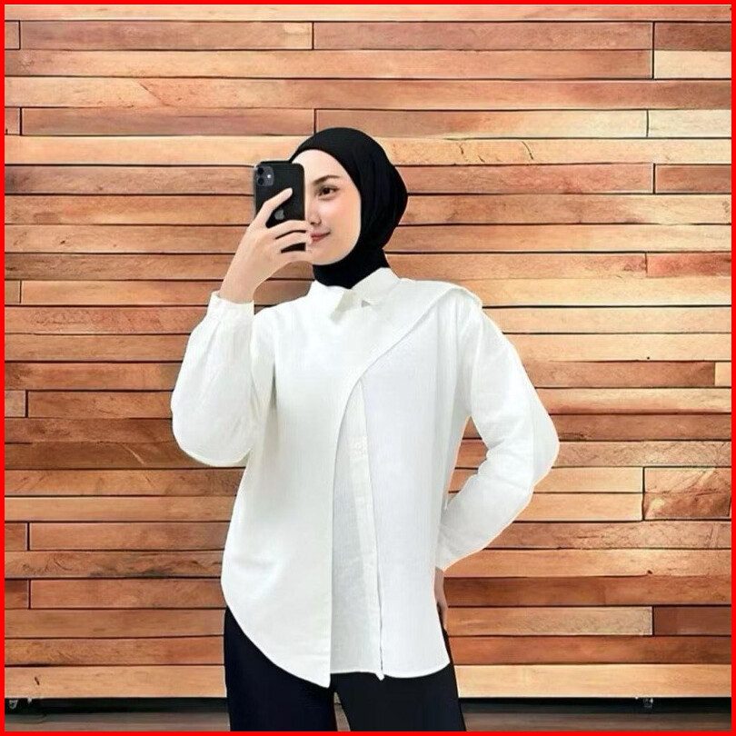 Geneaby - Alya Hawa Shirt Atasan Wanita Kemeja Kantor Kuliah Hitam Polo Katun Premium