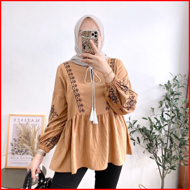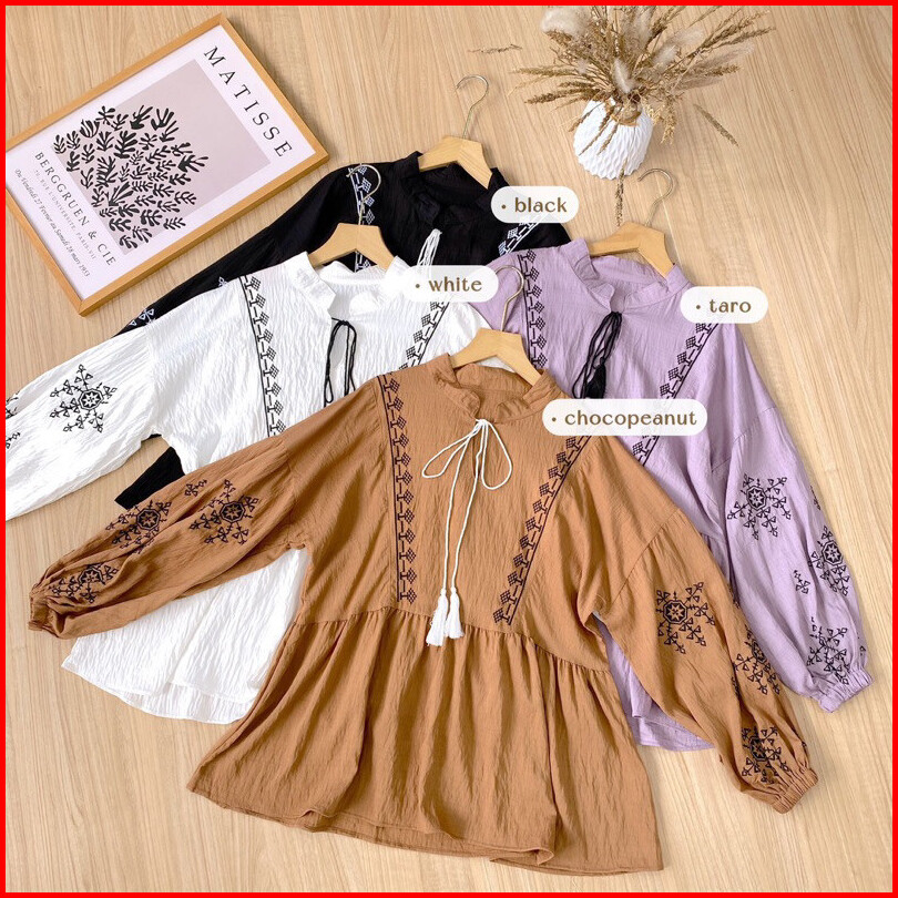 Geneaby - Helena Shirt Blouse Kemeja Atasan Wanita Bahan Crinkle Airflow Premium Emboidery Asli