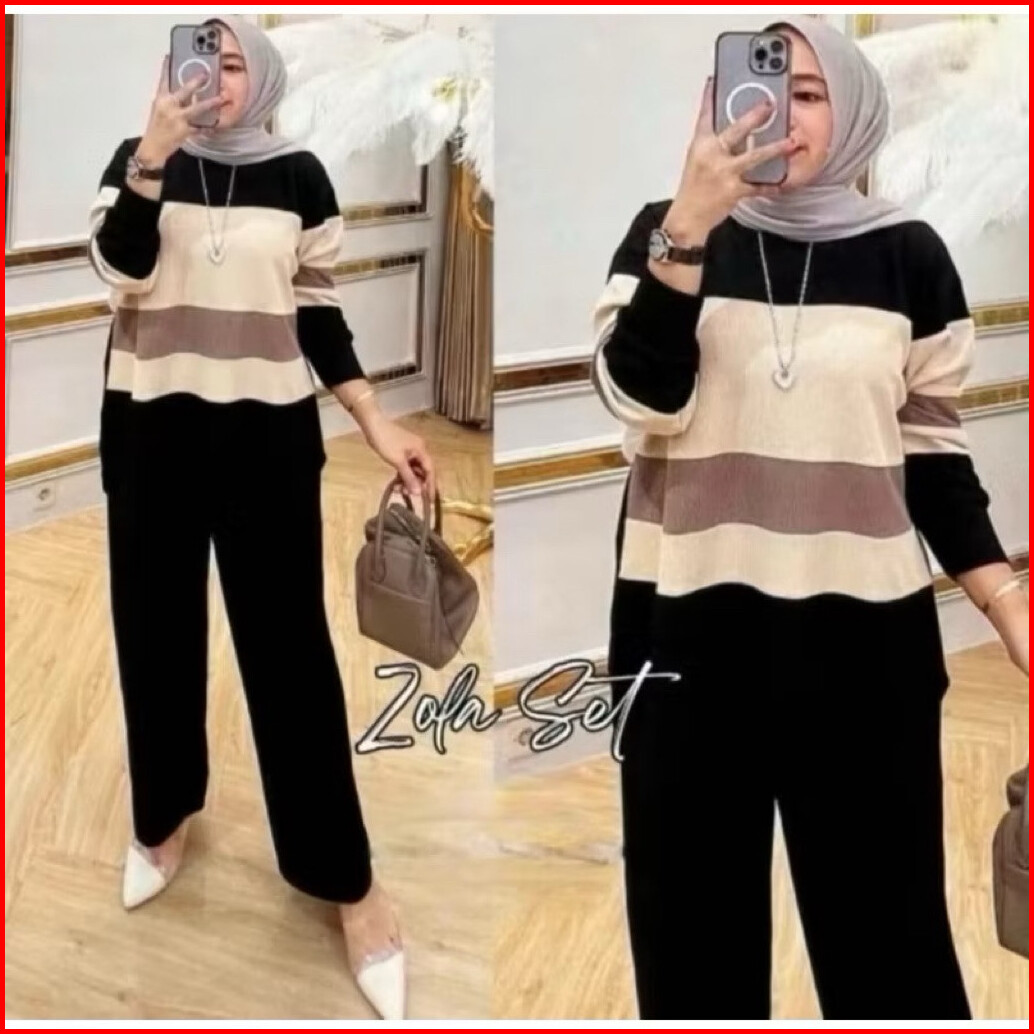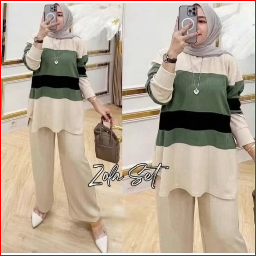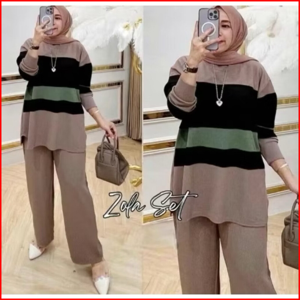 Geneaby - Zola One Set Wanita Setelan Bahan Crinkle Airflow