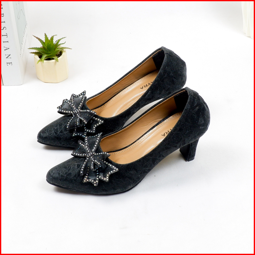 Mayra - Natalia Sepatu Pesta Wanita Pita Kupu Kupu Depan Sepatu Mules Wanita Hak 5 Cm