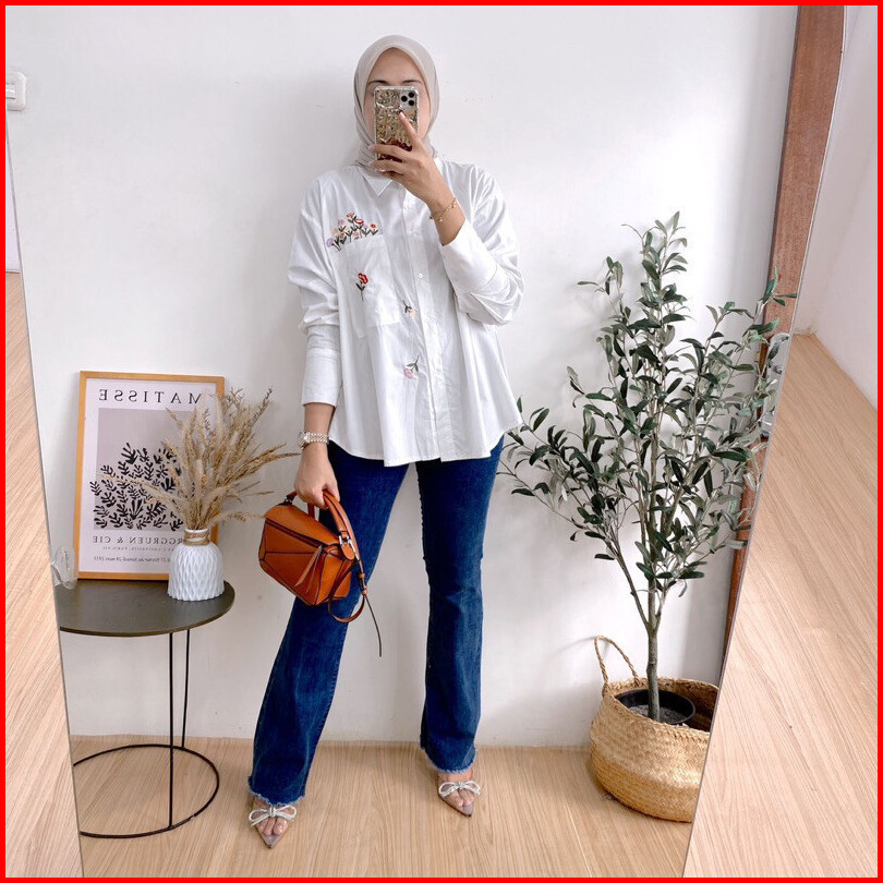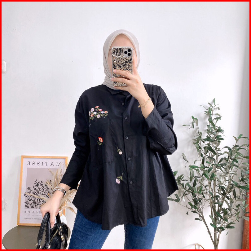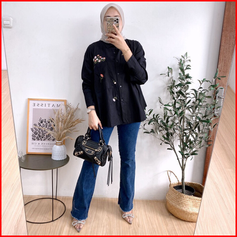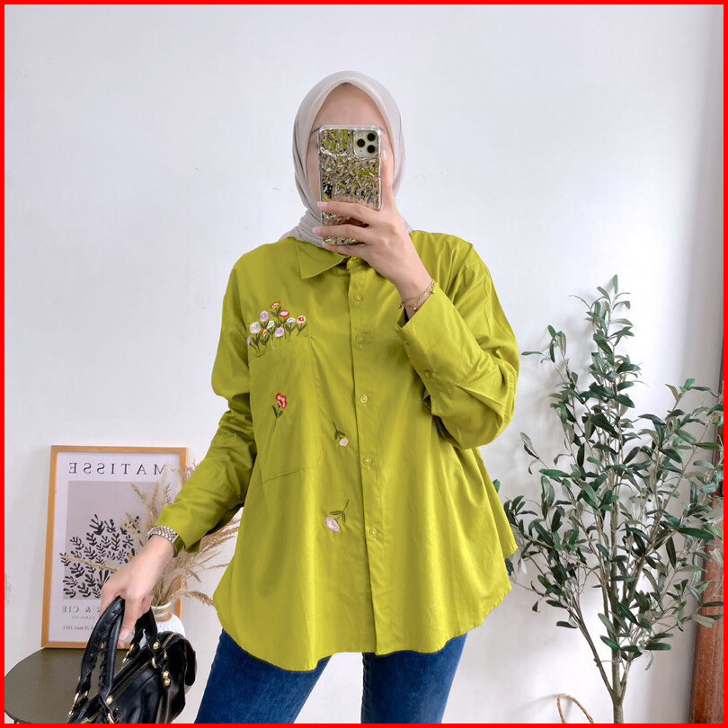 Geneaby - Monela Shirt Blouse Kemeja Atasan Wanita Bahan Rayon Twill Premium Emboidery Asli