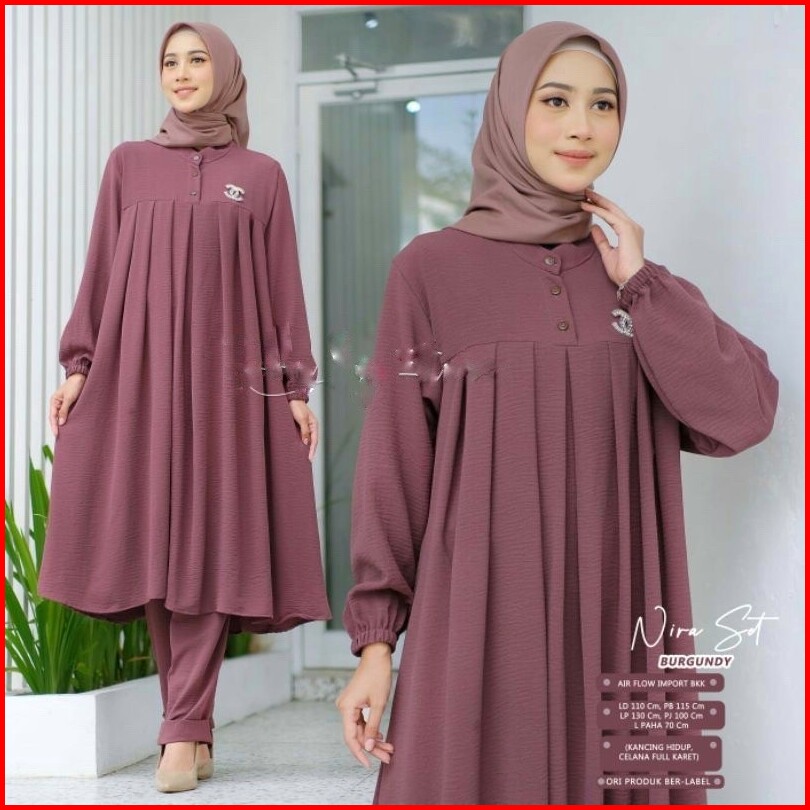Geneaby - Nela Set Wanita Size Xl Xxl Bahan Crinkle Airflow Setelan Nira Kancing Hidup