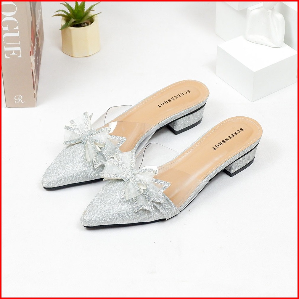 Sc - Shesil Sepatu Pesta Wanita Pita Kupu Kupu Depan Sepatu Mules Wanita Hak 3cm Terbaru