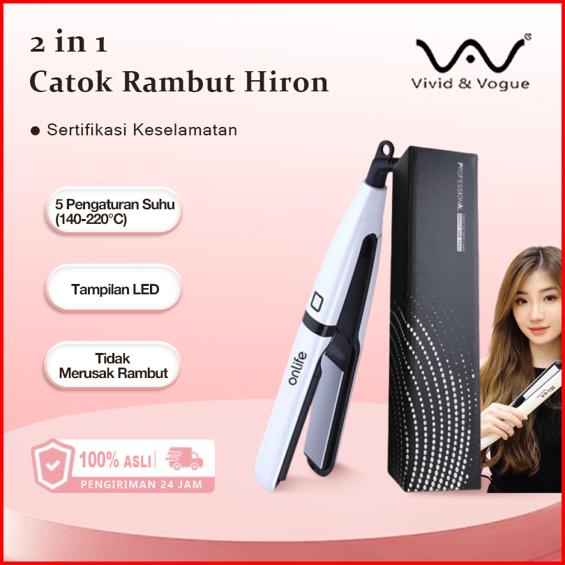 Vivid Vogue Catokan Rambut Lurus-keriting 2in1 Ceramic Tahan Lama Catok Pelurus Rambut