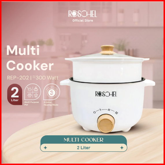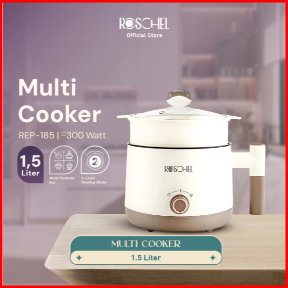 Roschel Multi Cooker With Streamer Non Stick Coating 1.5 Liter Panci Listrik Serbaguna