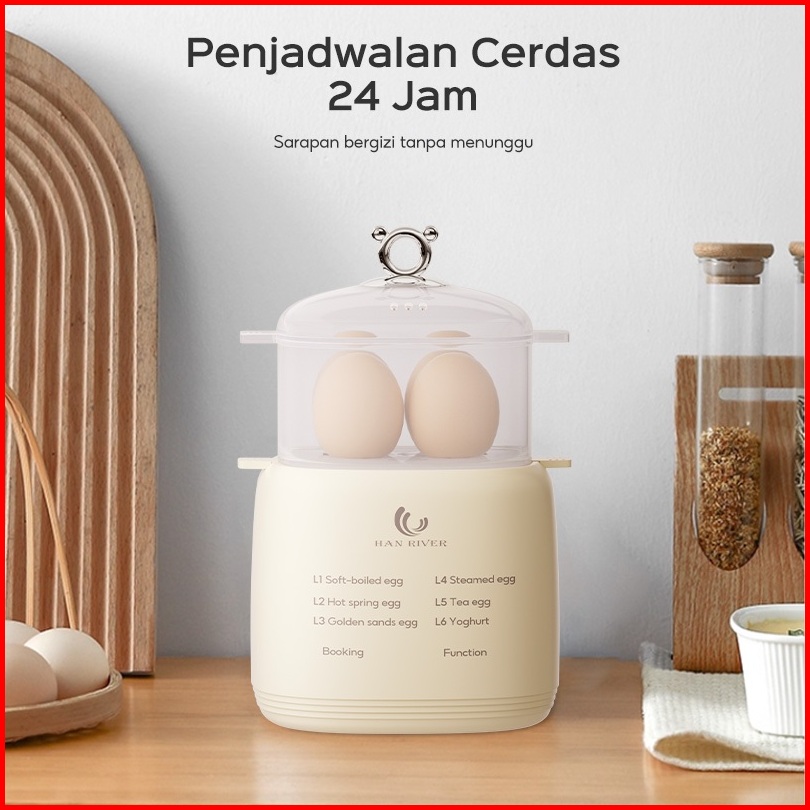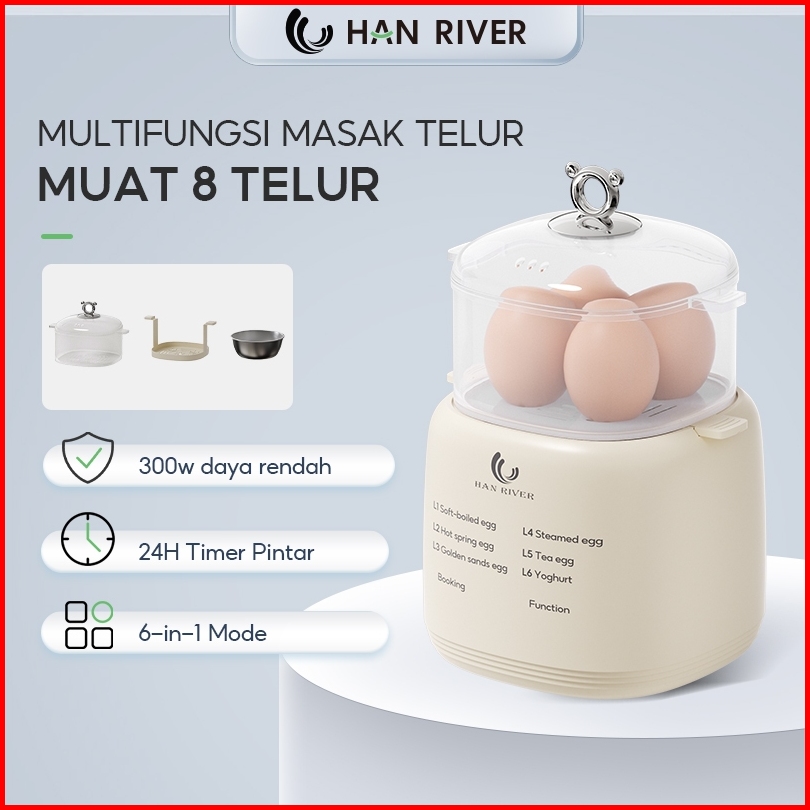 Han River Panci Listrik 6-in-1 Egg Cooker 300w Low Watt Multifungsi Steamer Tray Kukus Cup Kukus