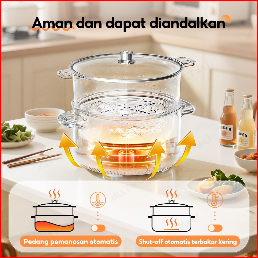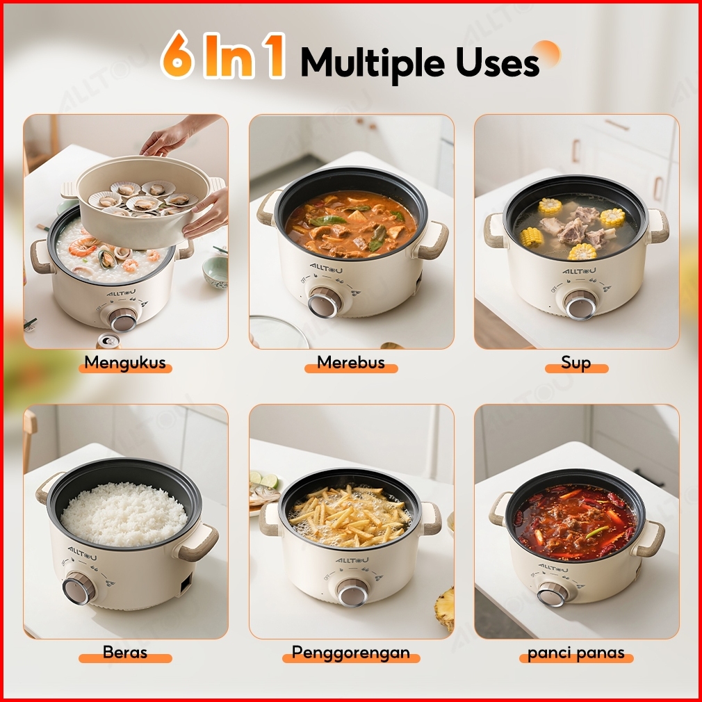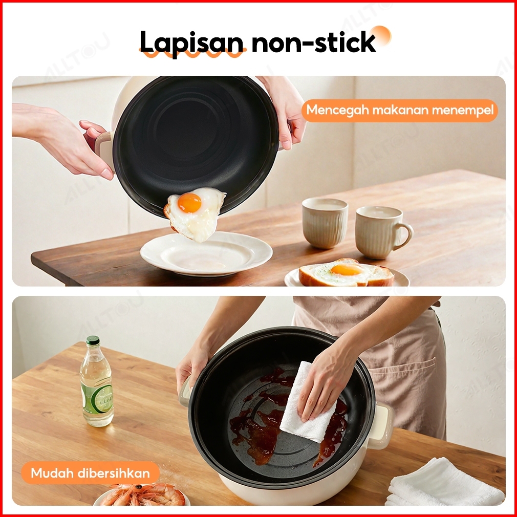 Alltou 5l 3l Panci Listrik Serbaguna Multifungsi Steamer Panci Listrik Serbaguna Anti Lengket