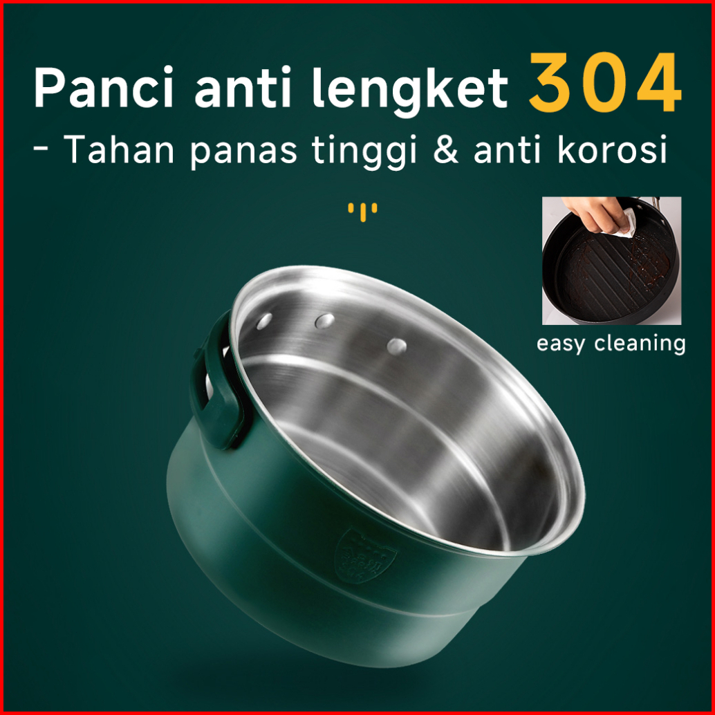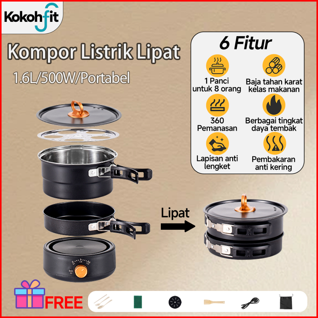 Kokohfit Panci Kompor Listrik Lipat Portabel 1.6l Panci Pemanggang Wajan Kukusan Multifungsi - 2level Daya 500w 800w