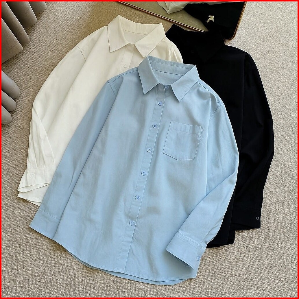 Femes - Erika Shirt Casual Atasan Lengan Panjang Baju Polos Wanita Korean Style
