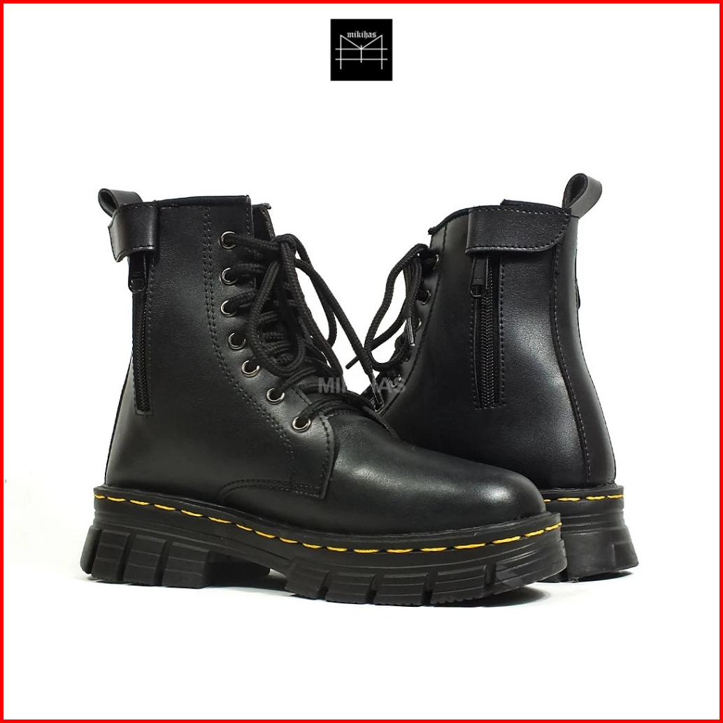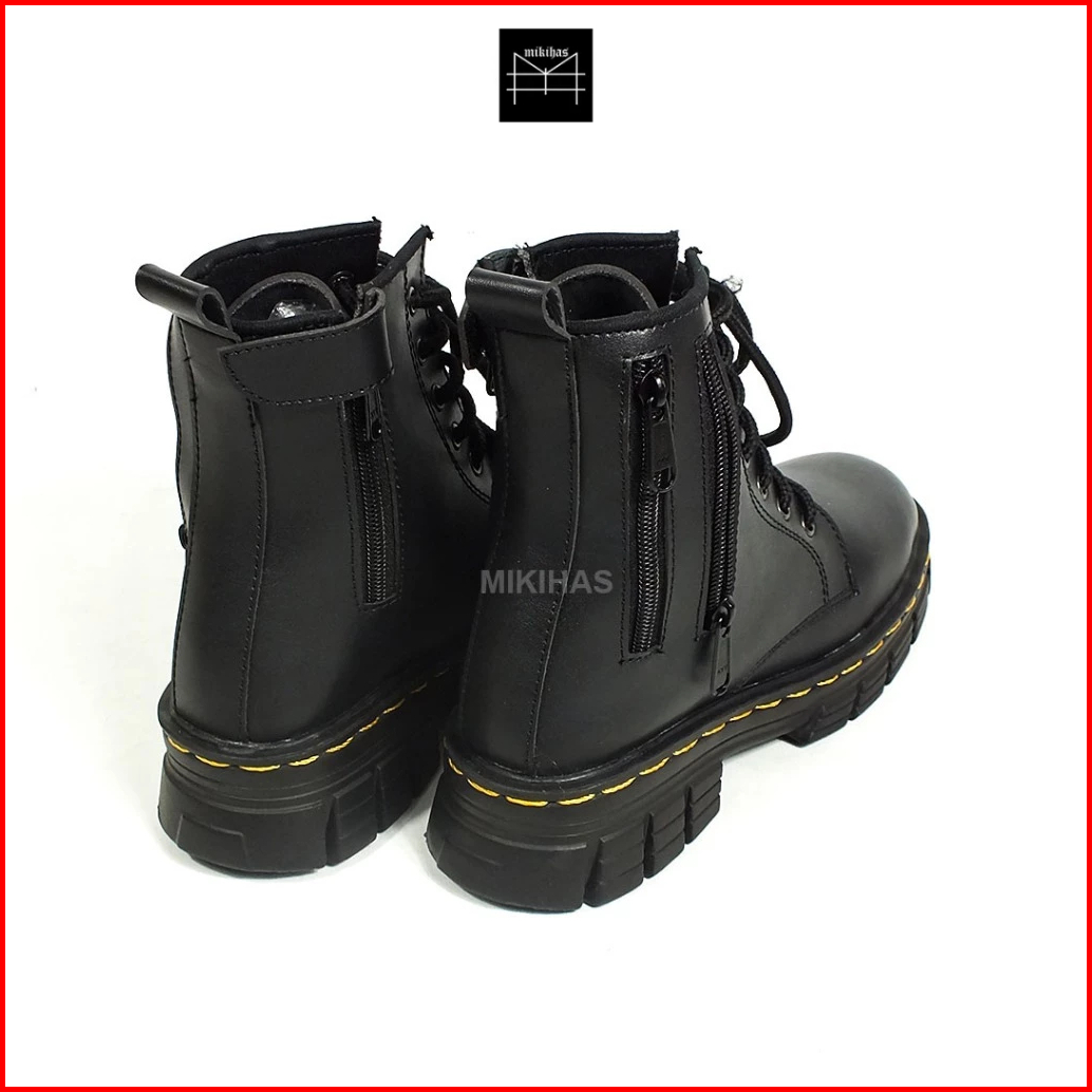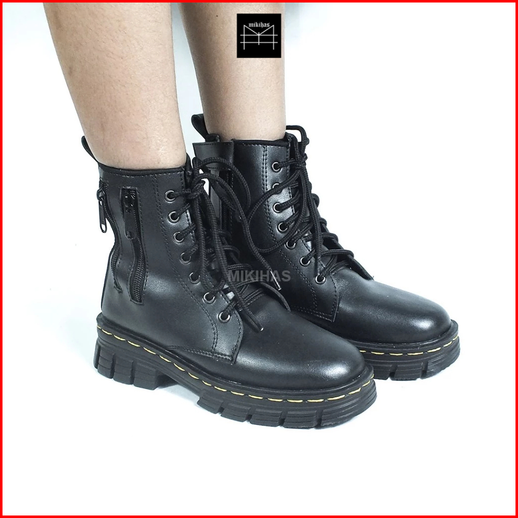 Mikihas - Sepatu Boots Wanita Kulit Hitam Platform 7 Hole Korean Style - Angel Dz