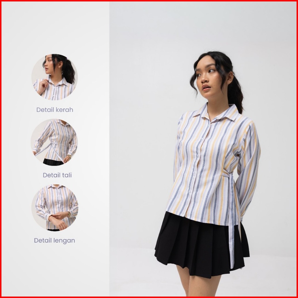 Neva Style - Arumi Shirt Lengan Panjang Fit Body Atasan Wanita Kemeja Kerja Slim Fit Tali Samping