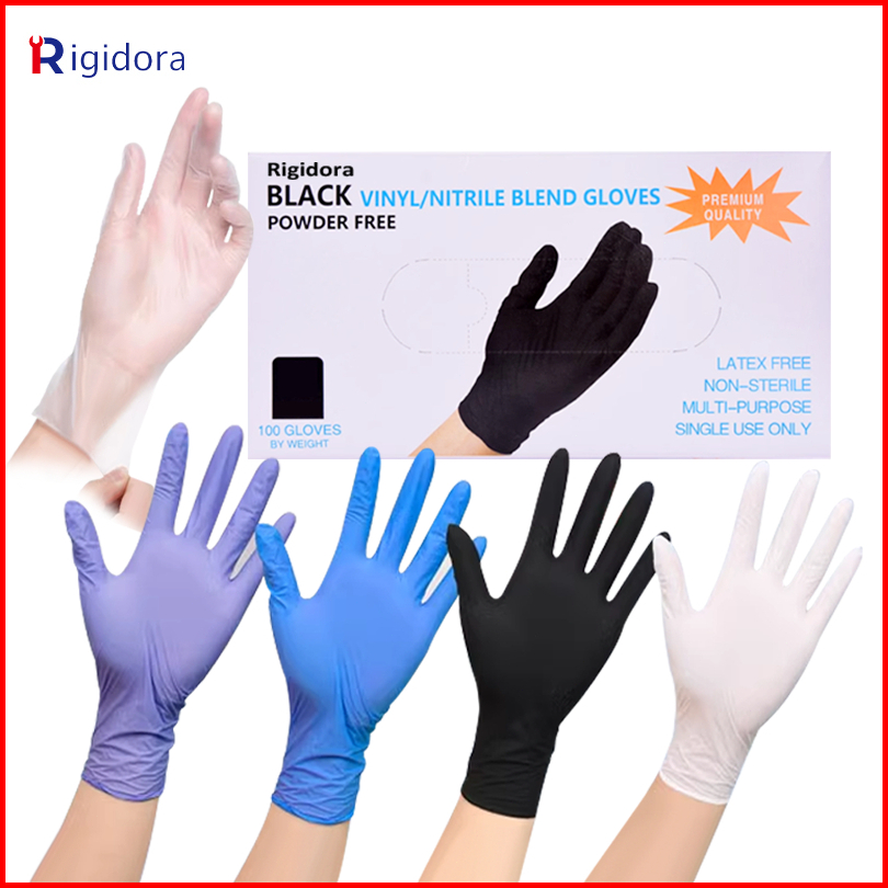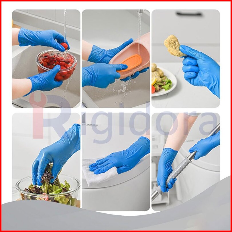 Rigidora Nitrile Gloves 100pcs Box Sarung Tangan Pelindung Menebal Berbagai Warna Ukuran