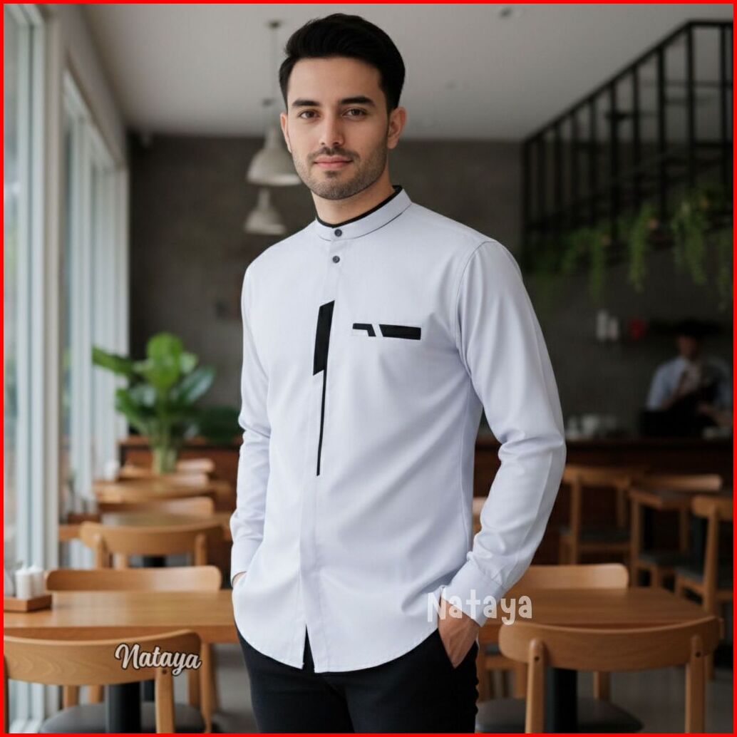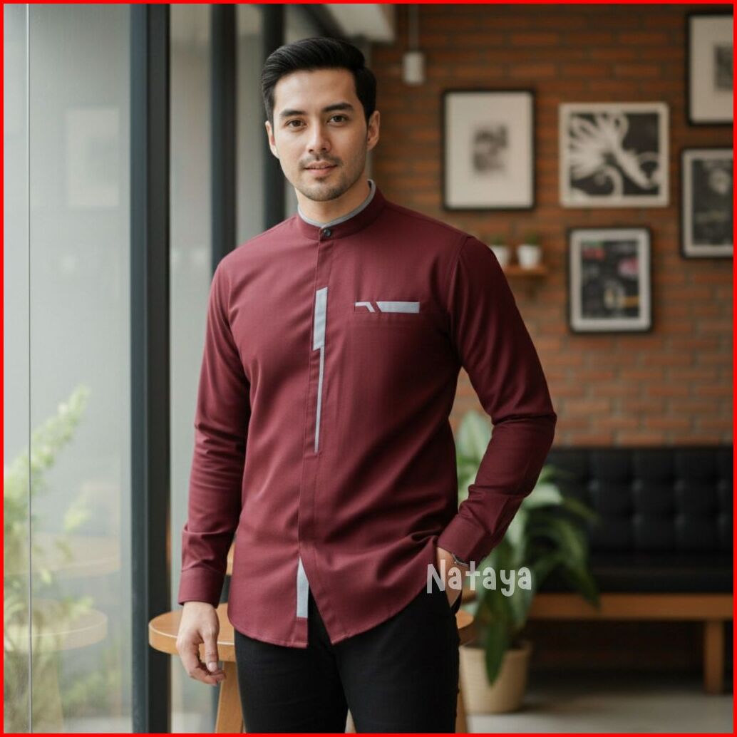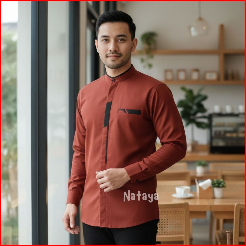Baju Koko Pria Lengan Panjang Busana Muslim Casual Bahan Katun Toyobo Warna Hitam Motif Malvin