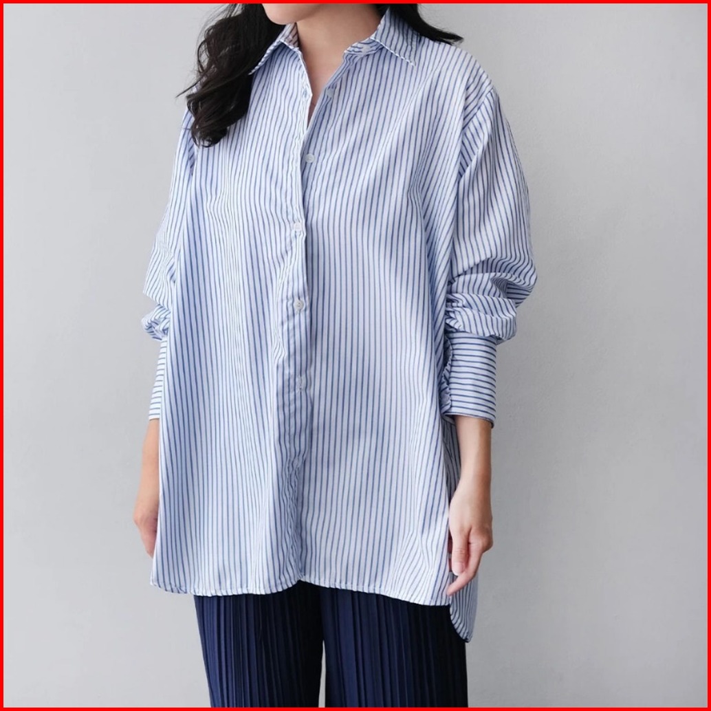 Raden Maeve Shirt - Stripe Shirt Kemeja Basic Salur Garis Oversized - Atasan Wanita Lengan Panjang