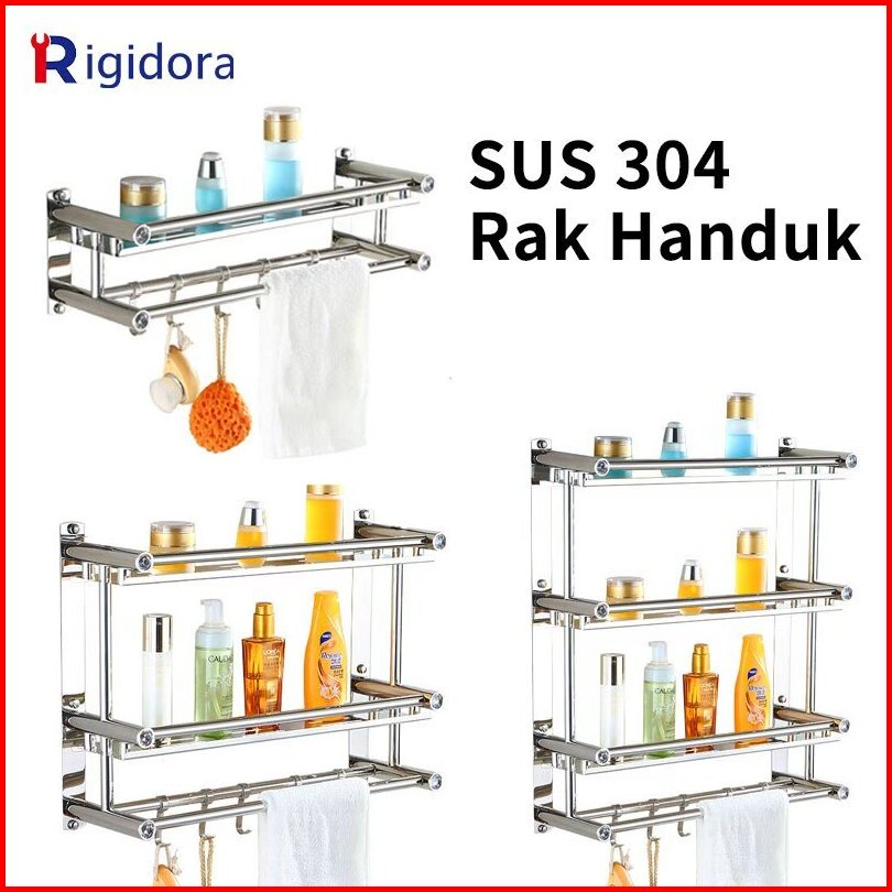 Rigidora Rak Handuk Kamar Mandi Sus 304 Rak Handuk Perak 1 2 3 Susun