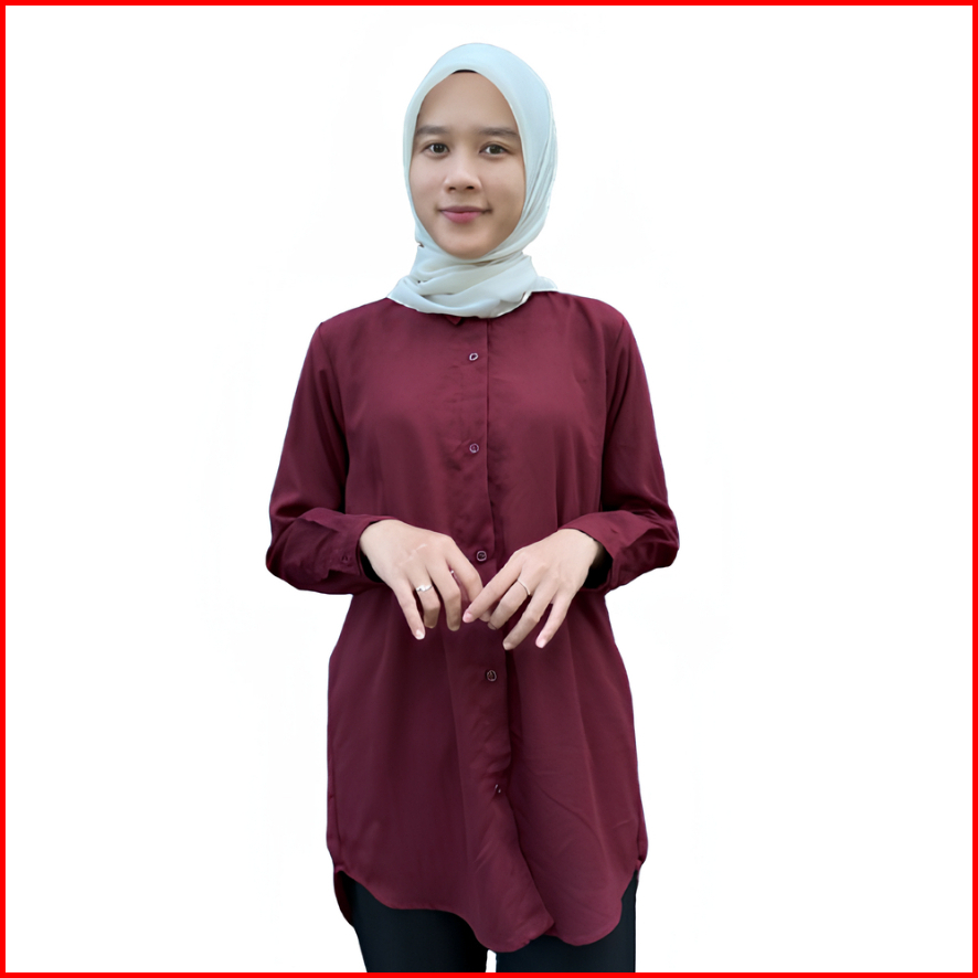 Polos - Kemeja Wanita Lengan Panjang Long Shirt Oversize Maroon