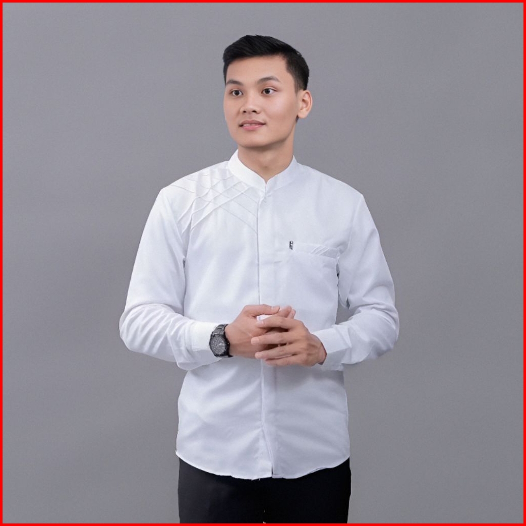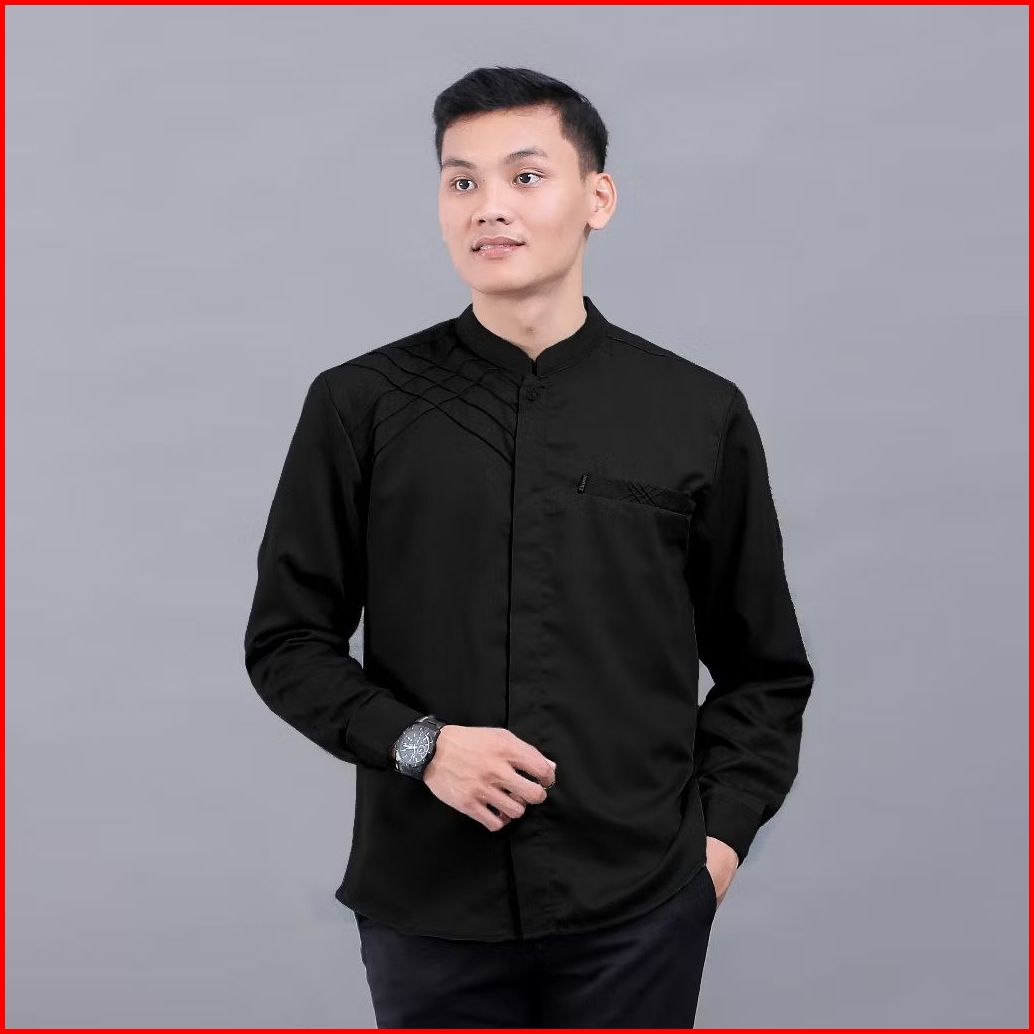 Baju Koko Pria Lengan Panjang Kombinasi Motif Marvel Terbaru Kemeja Koko Muslim Hadroh Elegan Adem