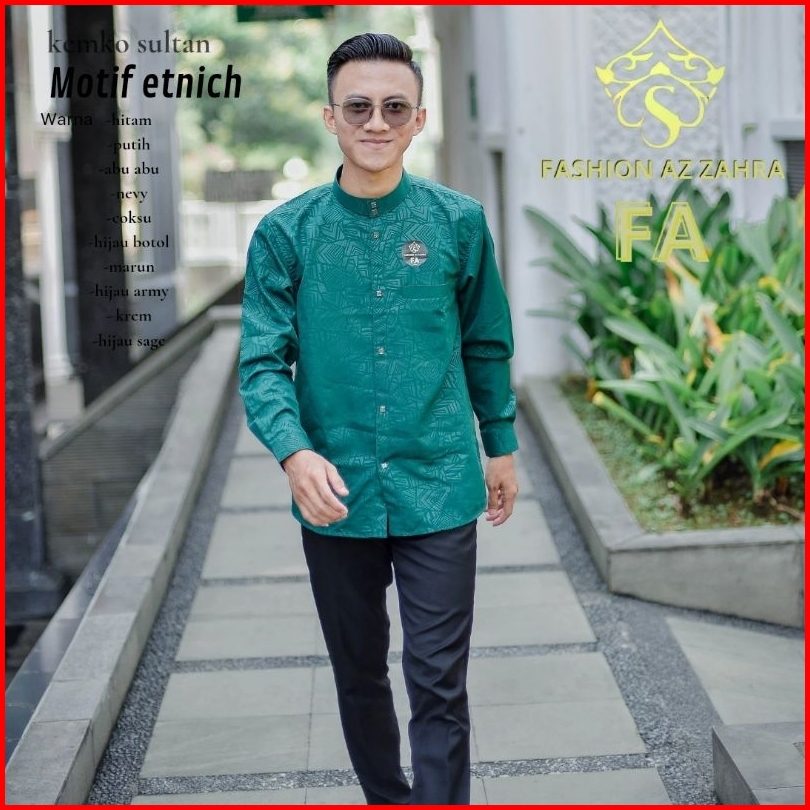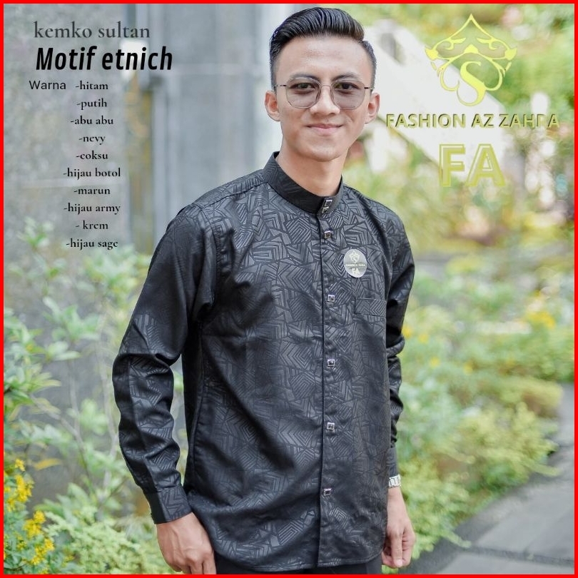Kemko Sultan Embos Pria Dewasa Terbaru Motif Corak Etnich Full Kancing Snap Import