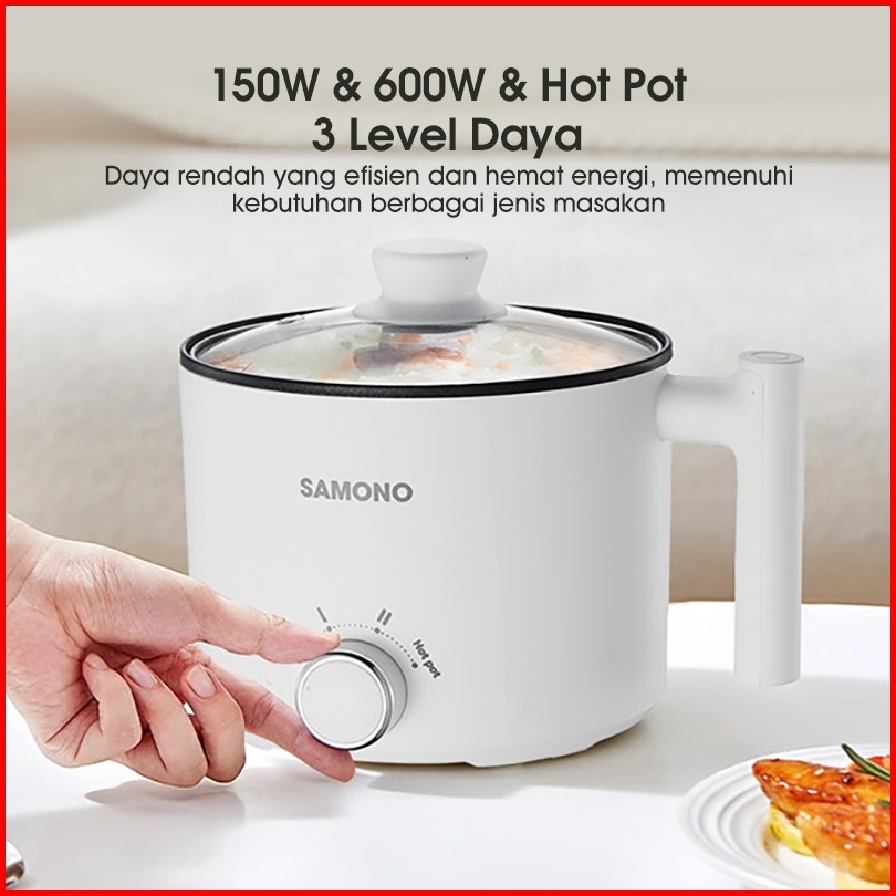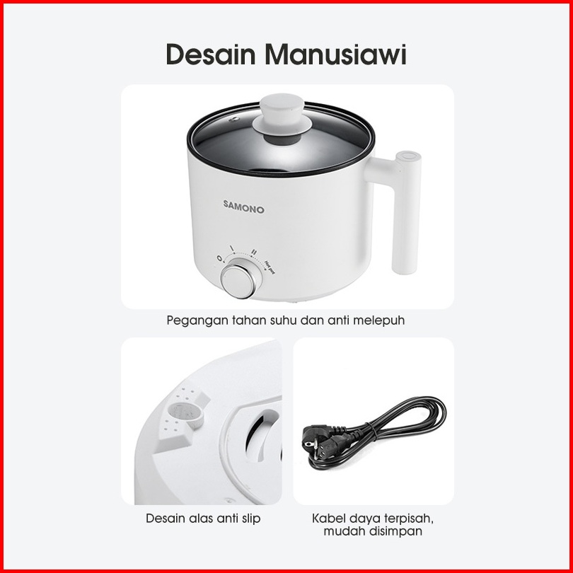 Samono Panci Listrik Serbaguna 1.5l Panci Listrik Anak Kost Low Watt Panci Shabu Goreng Kukus Panci Listrik Multifungsi