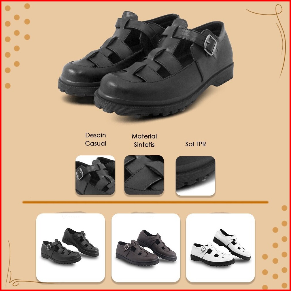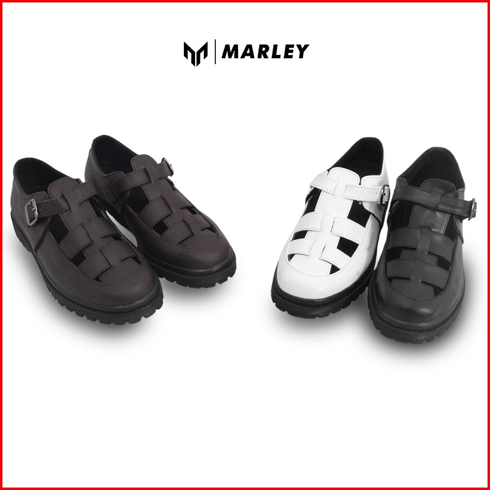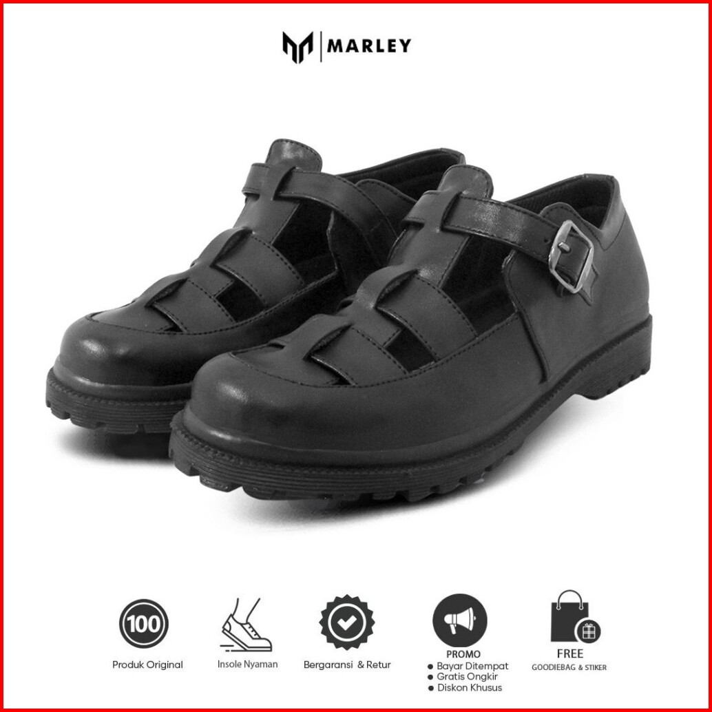 Marley Alive 123-01 Sepatu Docmart Loafers Wanita Casual Untuk Kerja Kantor Hitam Kulit Sintetis