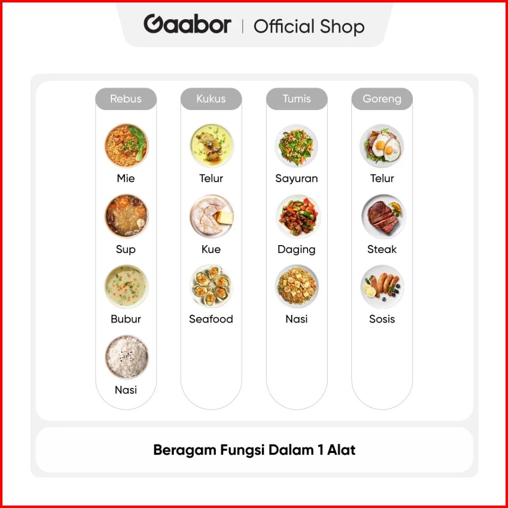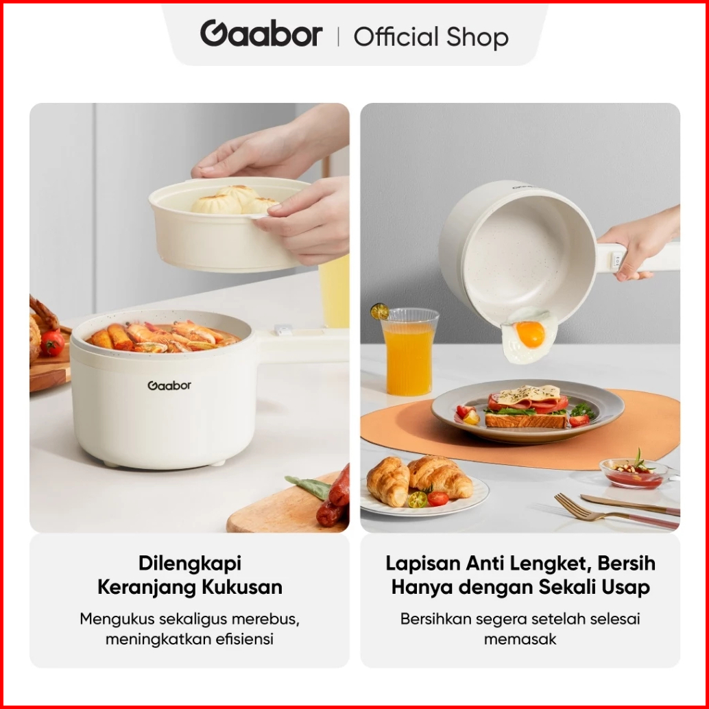Gaabor Panci Listrik Electric Cooker Anti Lengket 3l 600w Tutup Kaca Free Kukusan Ec-30m01a