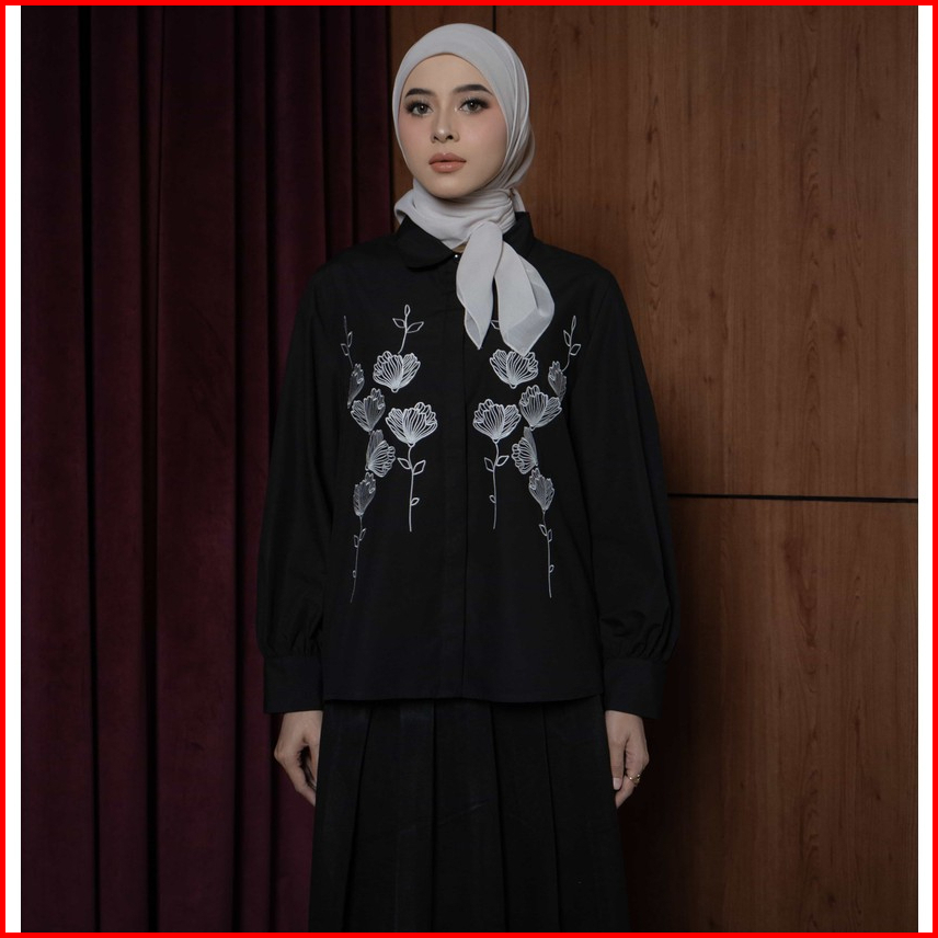 Mayoutfit Cora Shirt Kemeja Poplin Wanita Bordir Floral Embroidery