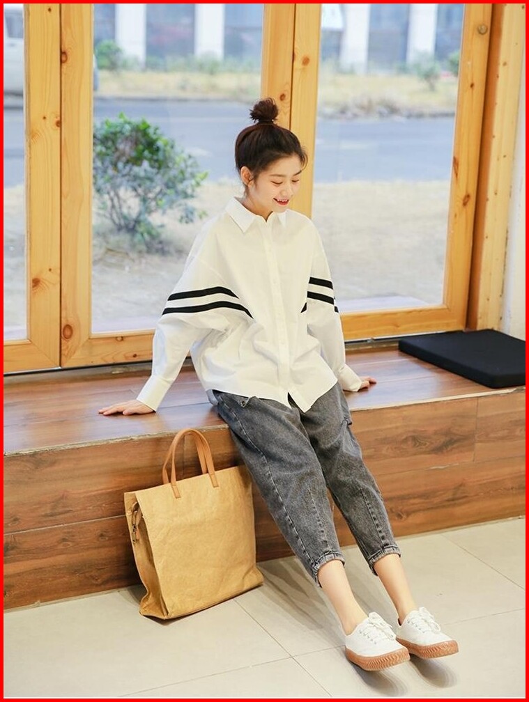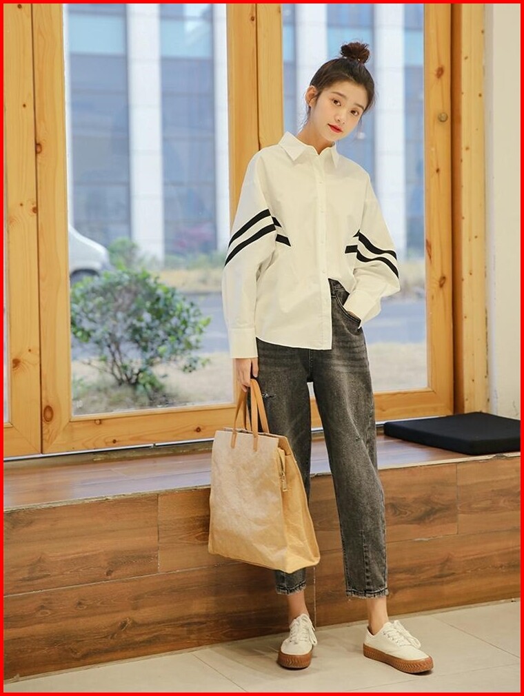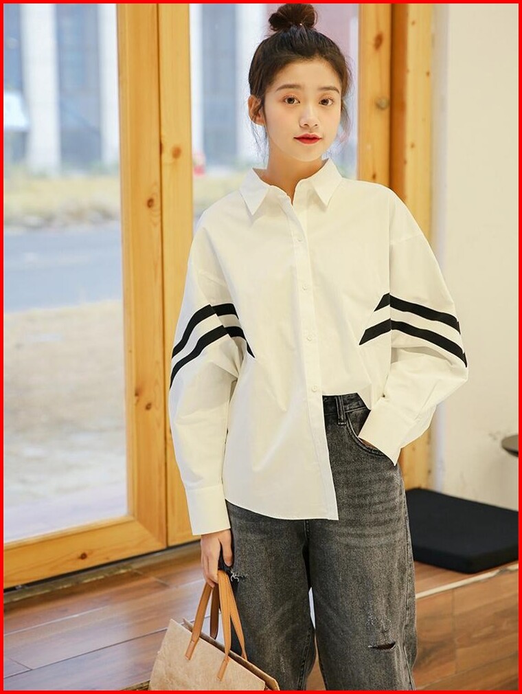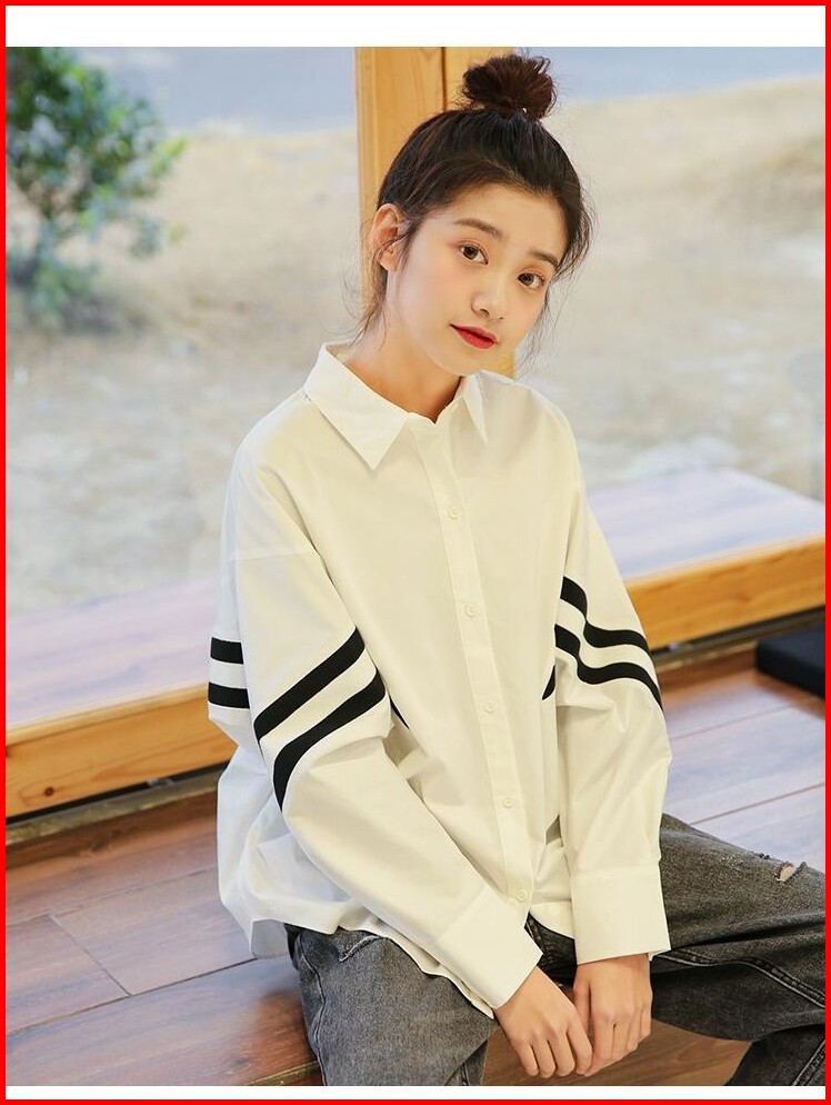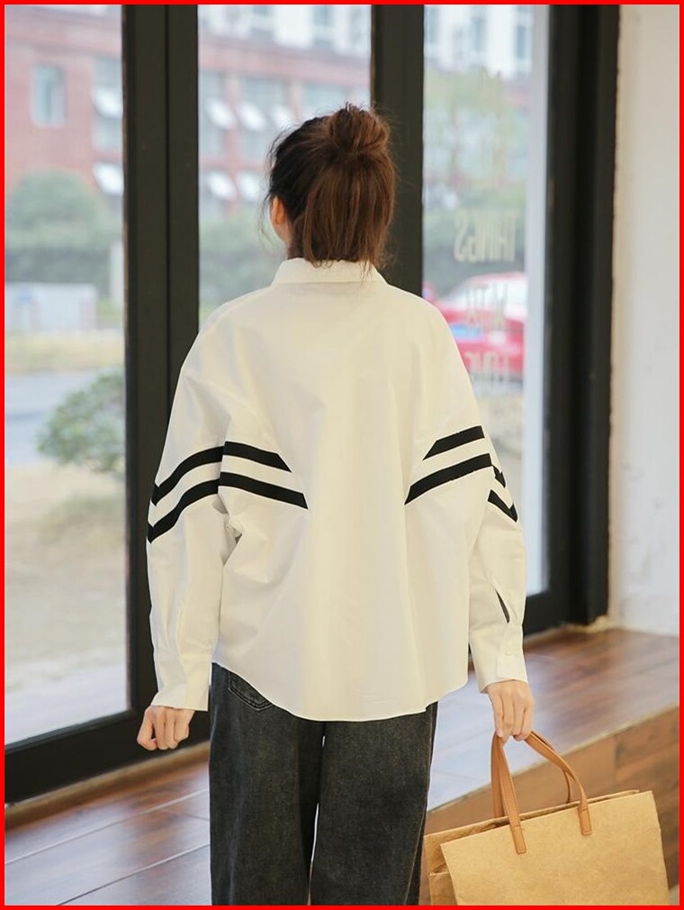 Tianshun Simple Black And White Striped Shirt Fashionable Batwing Sleeve Korean Style Top Women S Long Sleeve In Stock