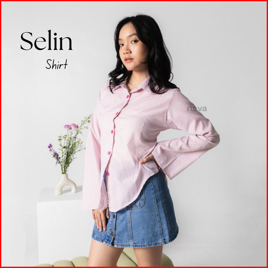 Neva Style - Selin Shirt Wispie Kemeja Fit Body Pinggang Karet Lengan Terompet Kemeja Kerja Wanita