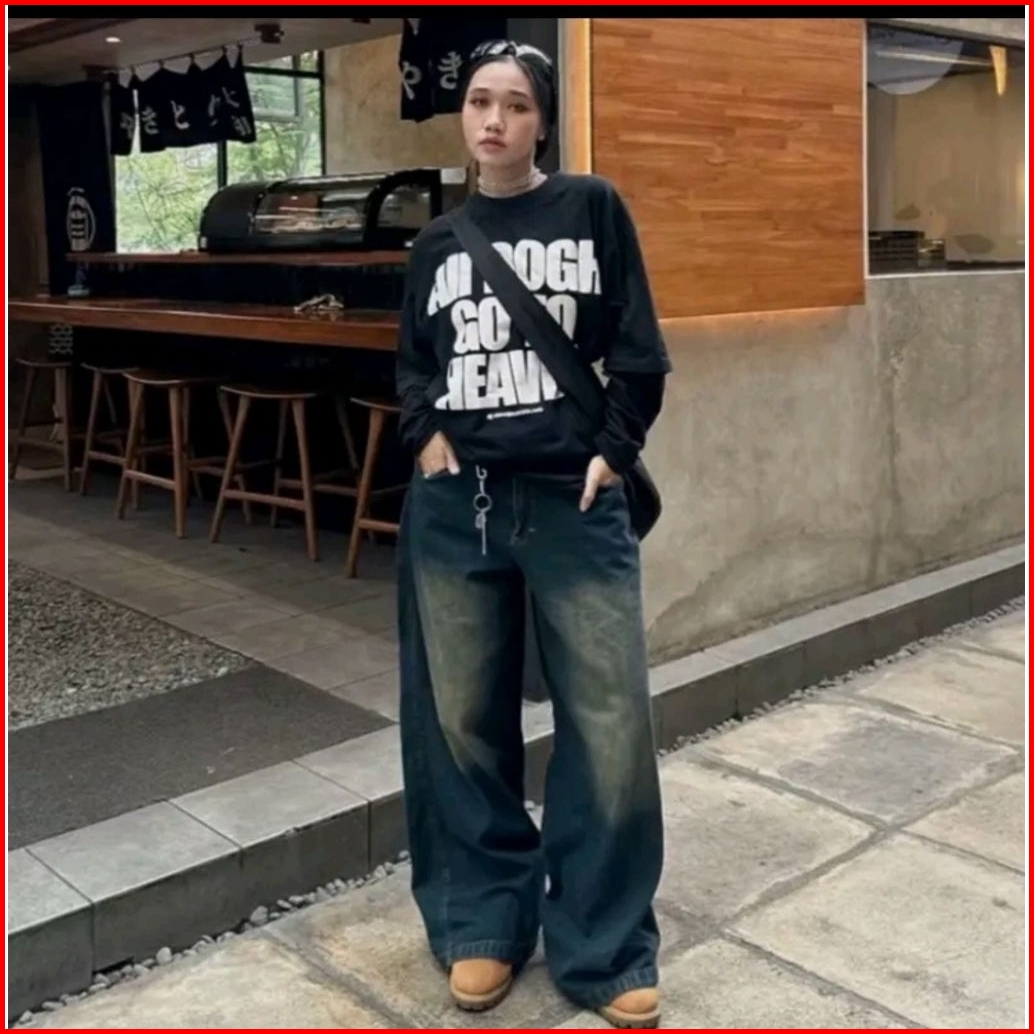 Haighwaist Baggy Loose Oversize Jeans Celana Wanita Komprang Tofu Koreanstyle