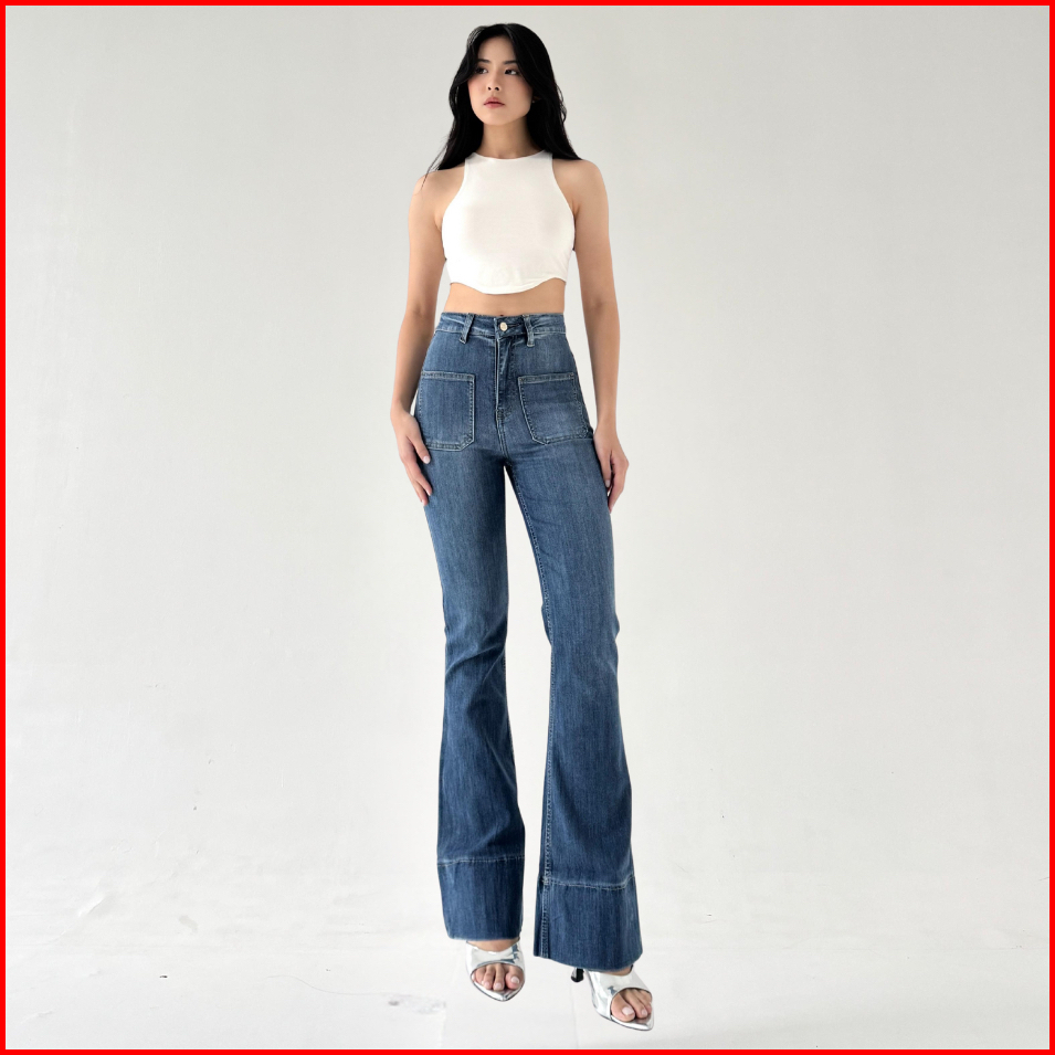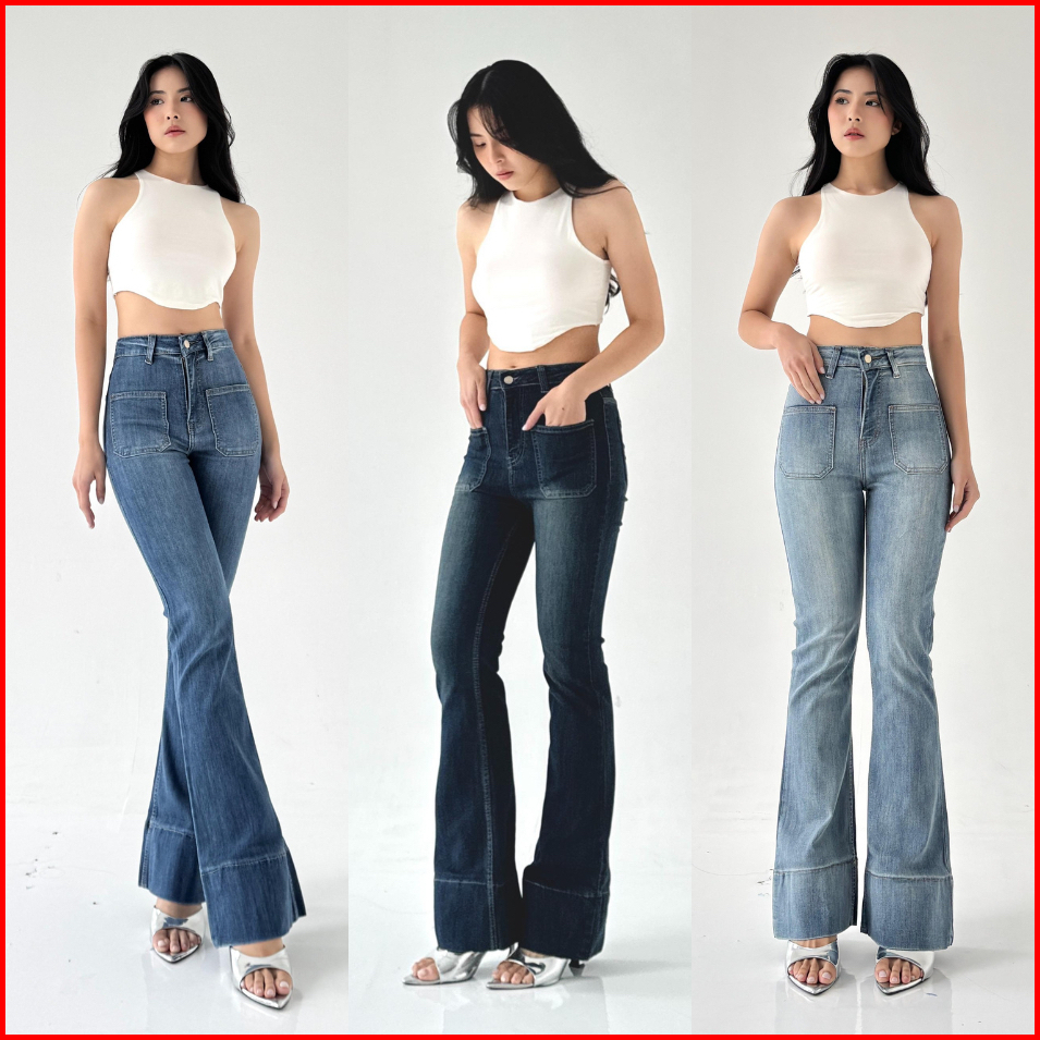 Ladouce - Kelly High Waist Cutbray Jeans Celana Stretch Flare Panjang Wanita