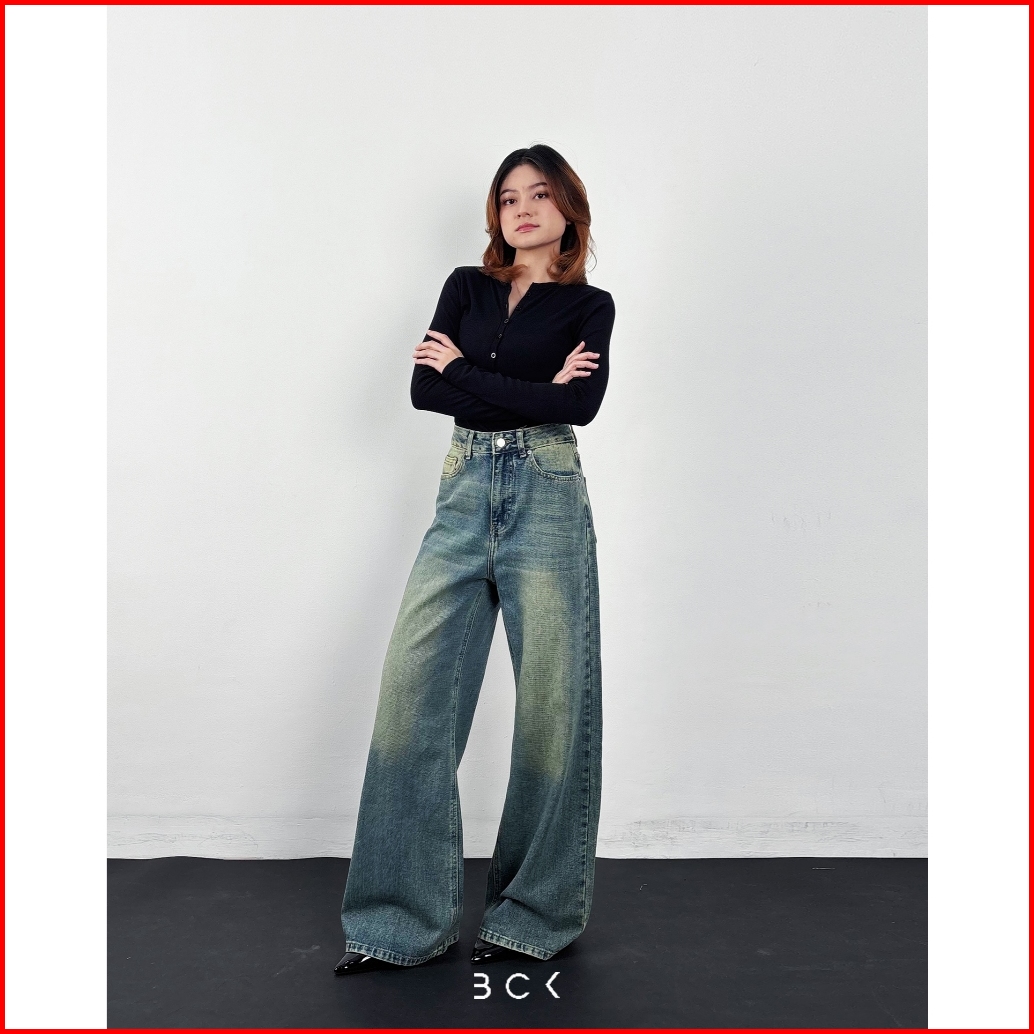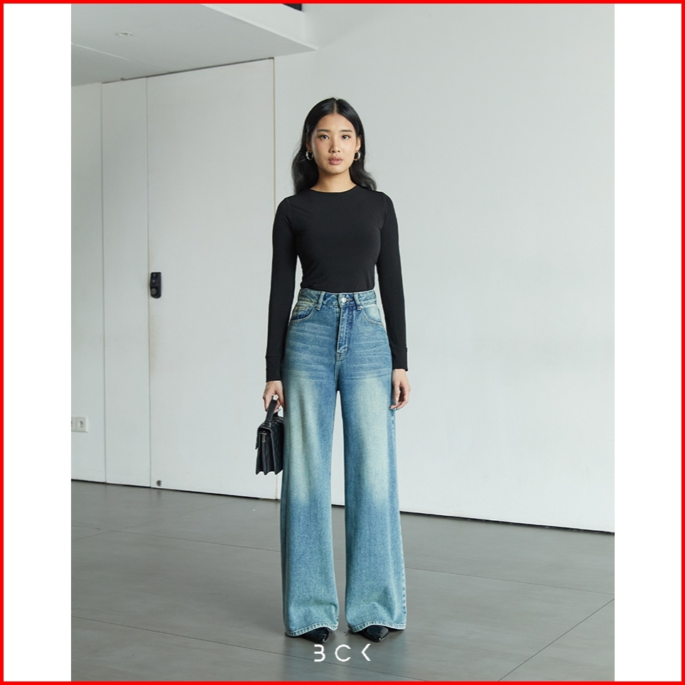 Bck - Celana Wide Leg Jeans Highwaist Wanita Annika