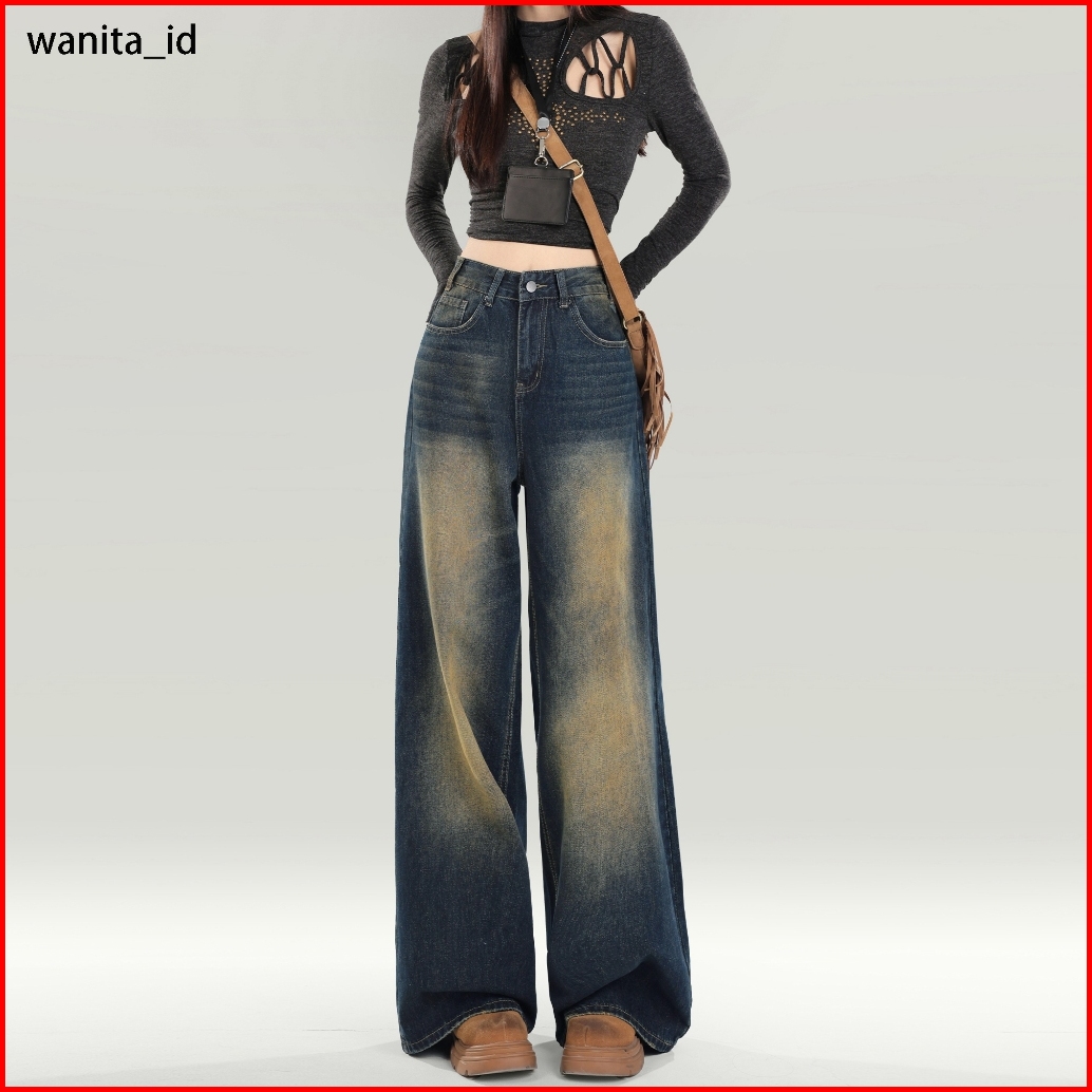 Wanita Idvintage Jeans Wanita Celana Kulot Straight Jeans Wanita Celana Baggy Pants Highwaist