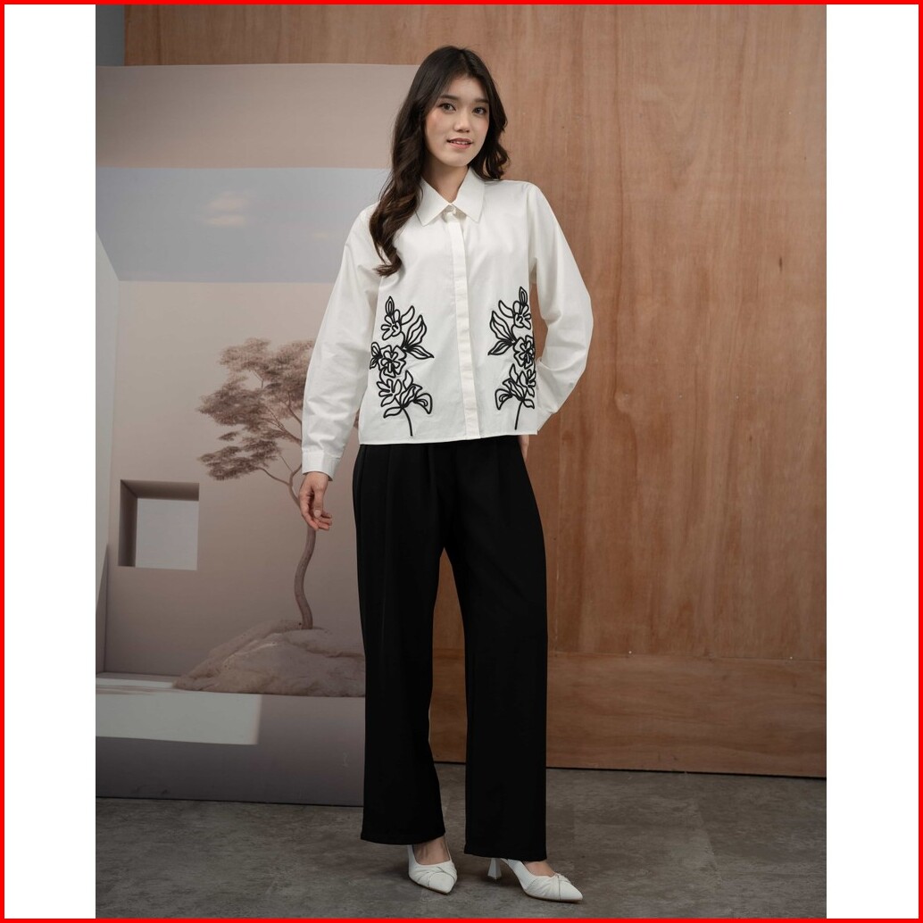 Mayoutfit Aryne Shirt Kemeja Poplin Basic Wanita Motif Bordir Embroidery