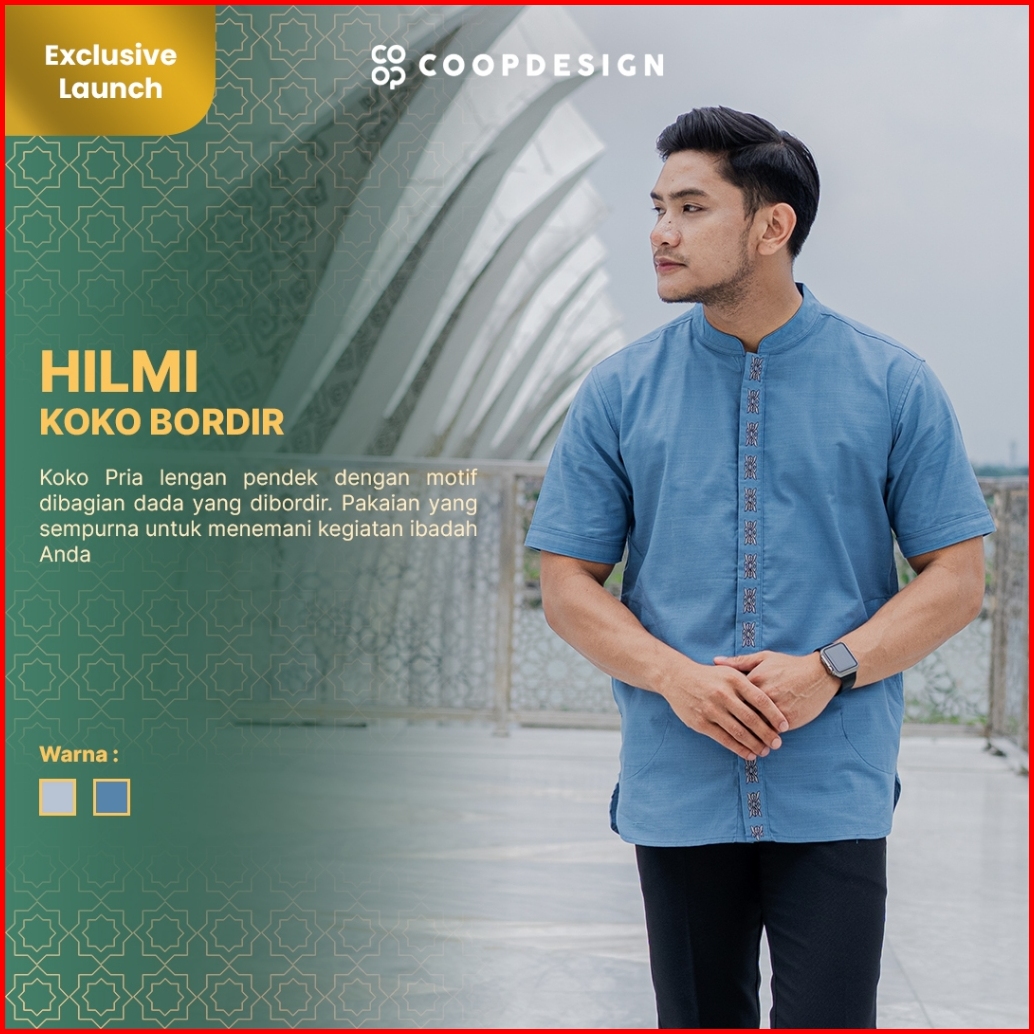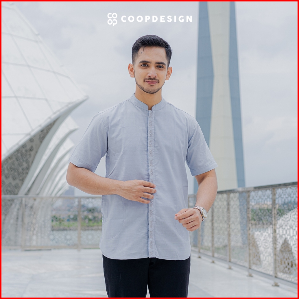 Limited Baju Lebaran 2025 Coop Design - Hilmi Koko Bordir Kerah Changi Collarless Katun Lengan Pendek Pria