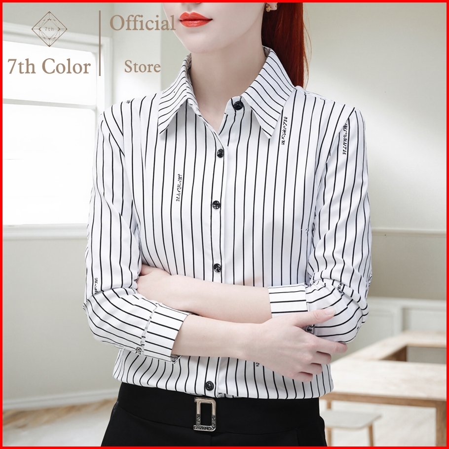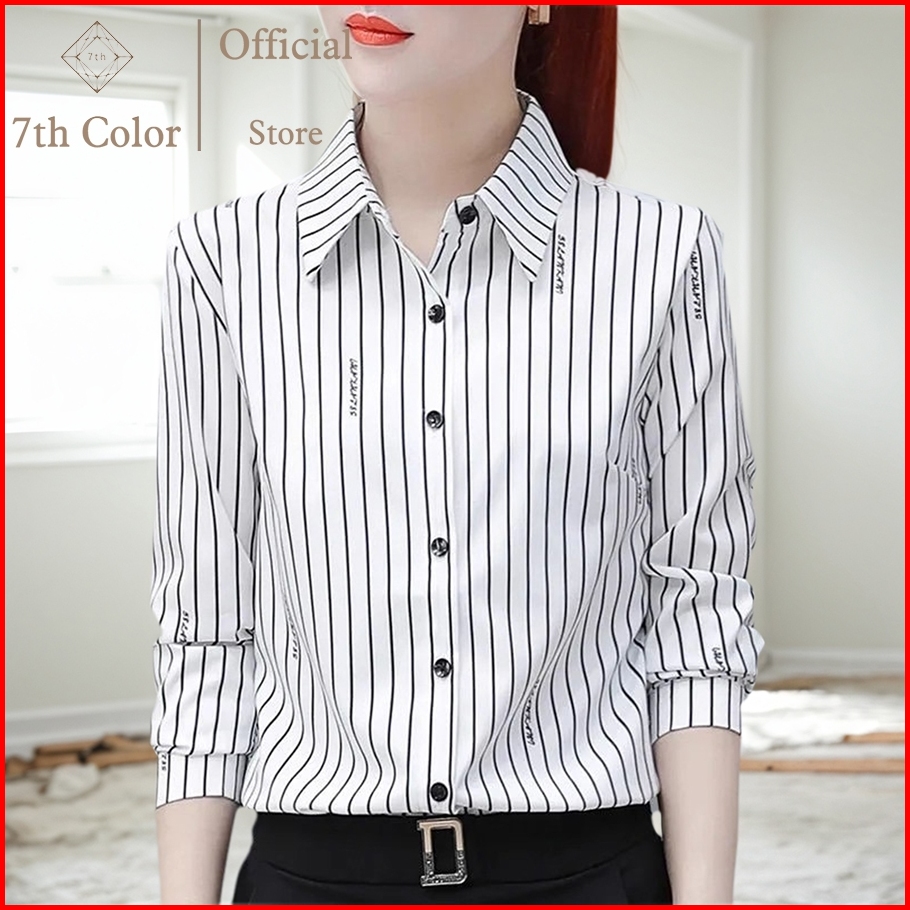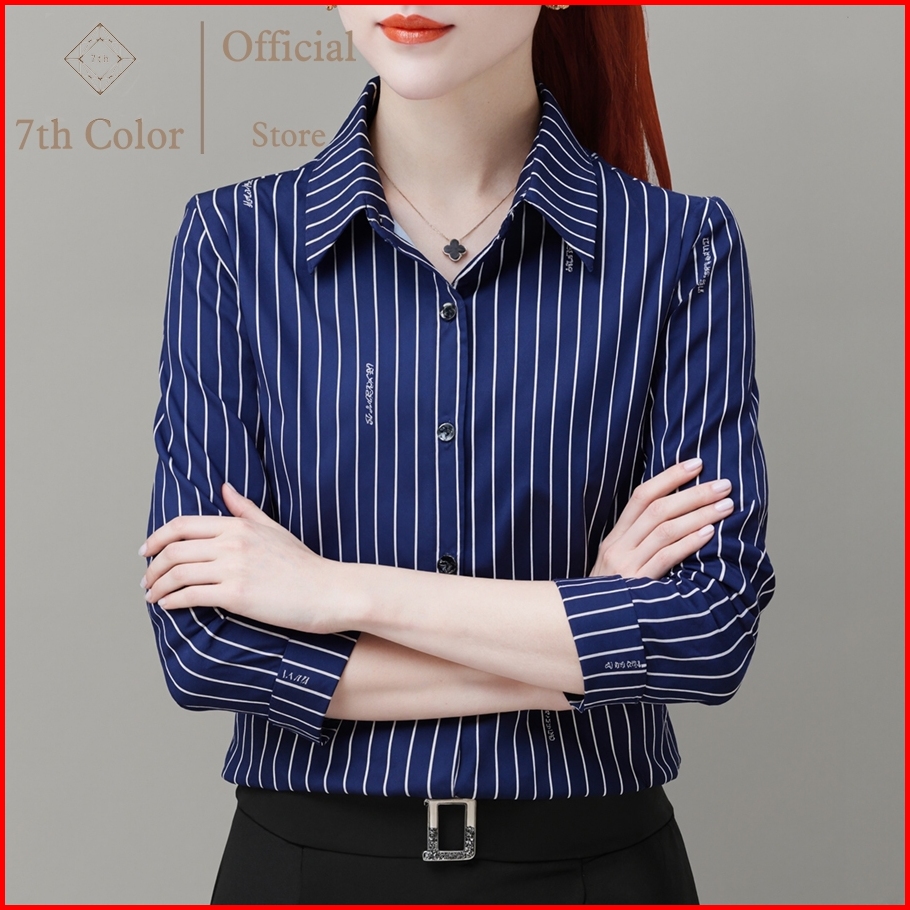 7th Color Kemeja Kerja Wanita Kemeja Wanita Garis Kemeja Wanita Kantor Atasan Wanita Motif Garis Kemeja Slim Fit Wanita