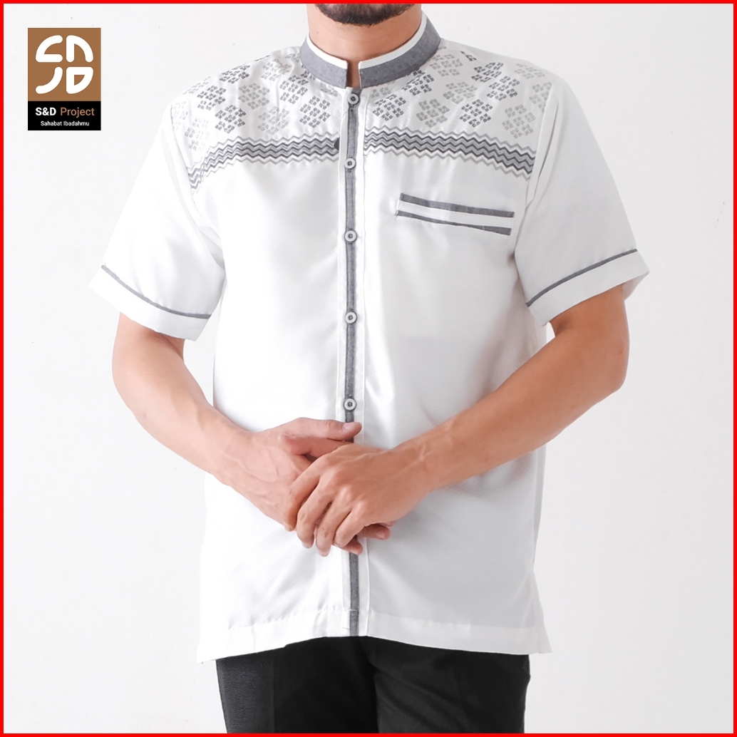 S D Project Baju Koko Muslim Seri 32 Bahan Polikatun Warna Putih Tulang Jumbo S-4xl Untuk Pria Dewasa Lengan Pendek Moti