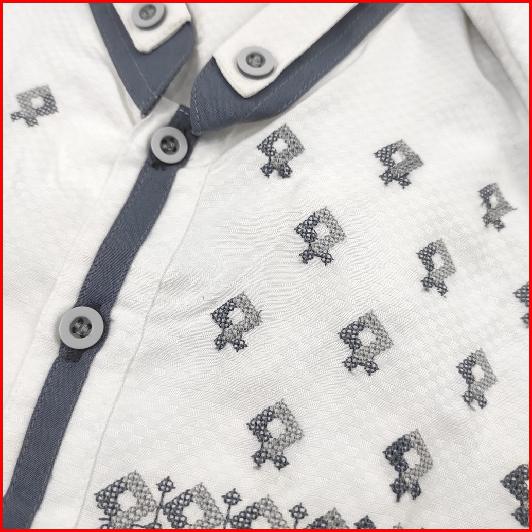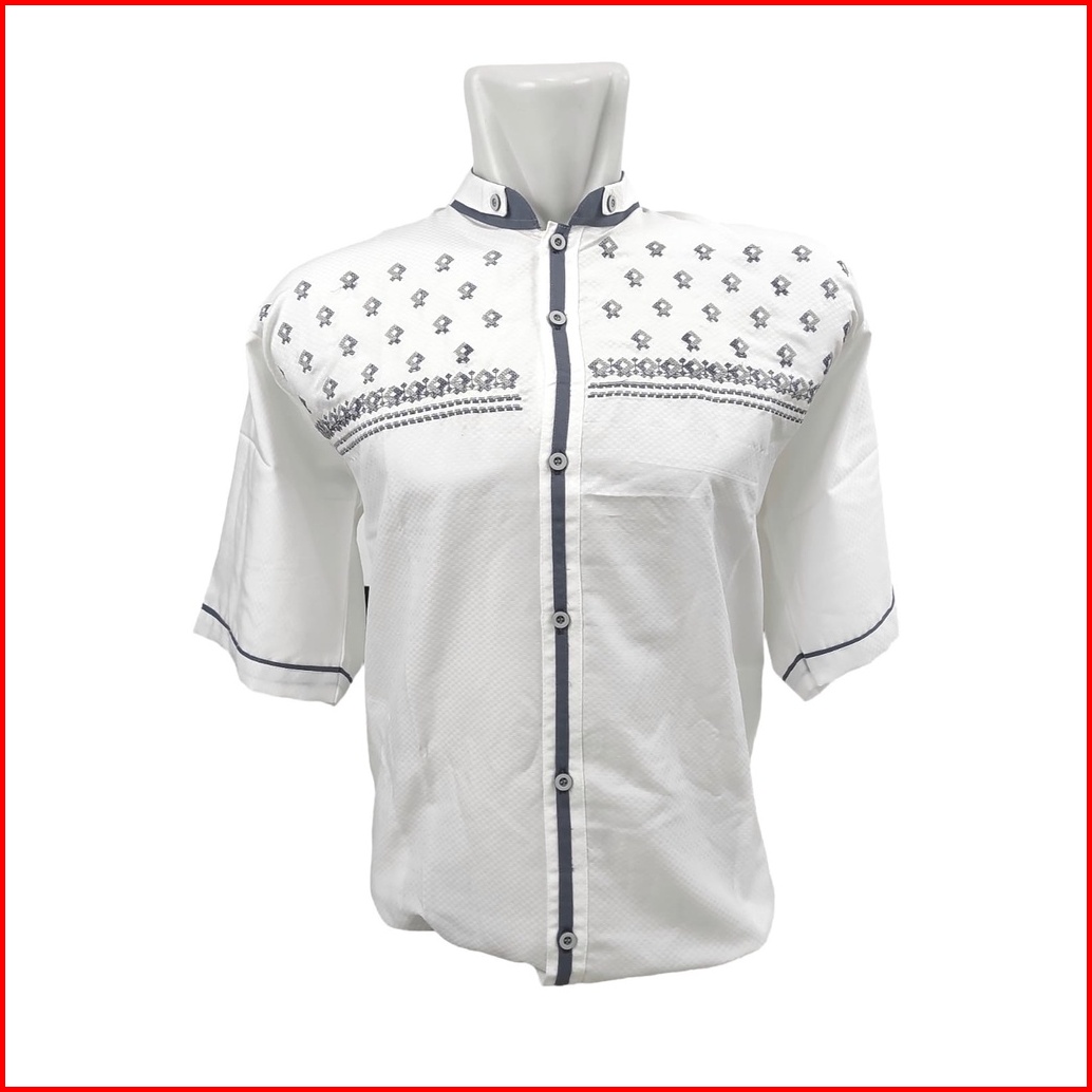 Kemeja Koko Dewasa Laki Cowok Pria Bordir Jumbo M L Xl 2xl 3xl 4xl Putih Tulang Gading Lengan Pendek