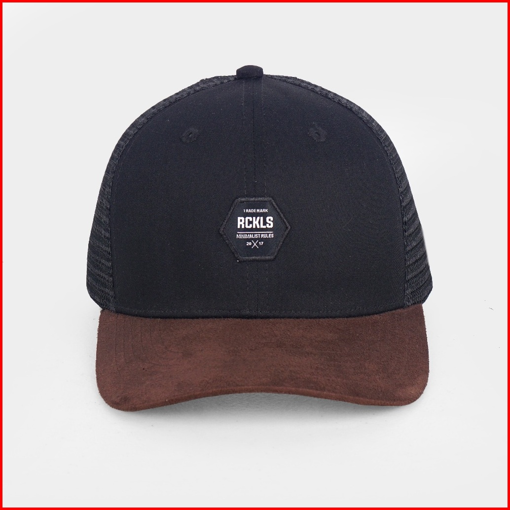 Rckls. Topi Pria Jaring Trucket Topi Trucker Axetone Black Brown